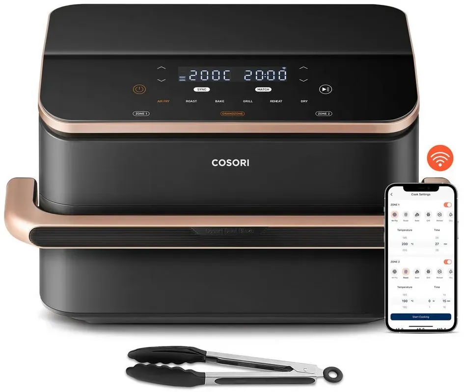 Auf Lager Versand durch AmazonCOSORI Turbo Tower Pro Airfryer, Keramikbeschichtung Heiluftfritteuse 2 Kammern, 10,8L Heissluftfritteuse mit DualBlaze, Ohne Teflon Beschichtung, Automatische Luftstrom-Regulierung