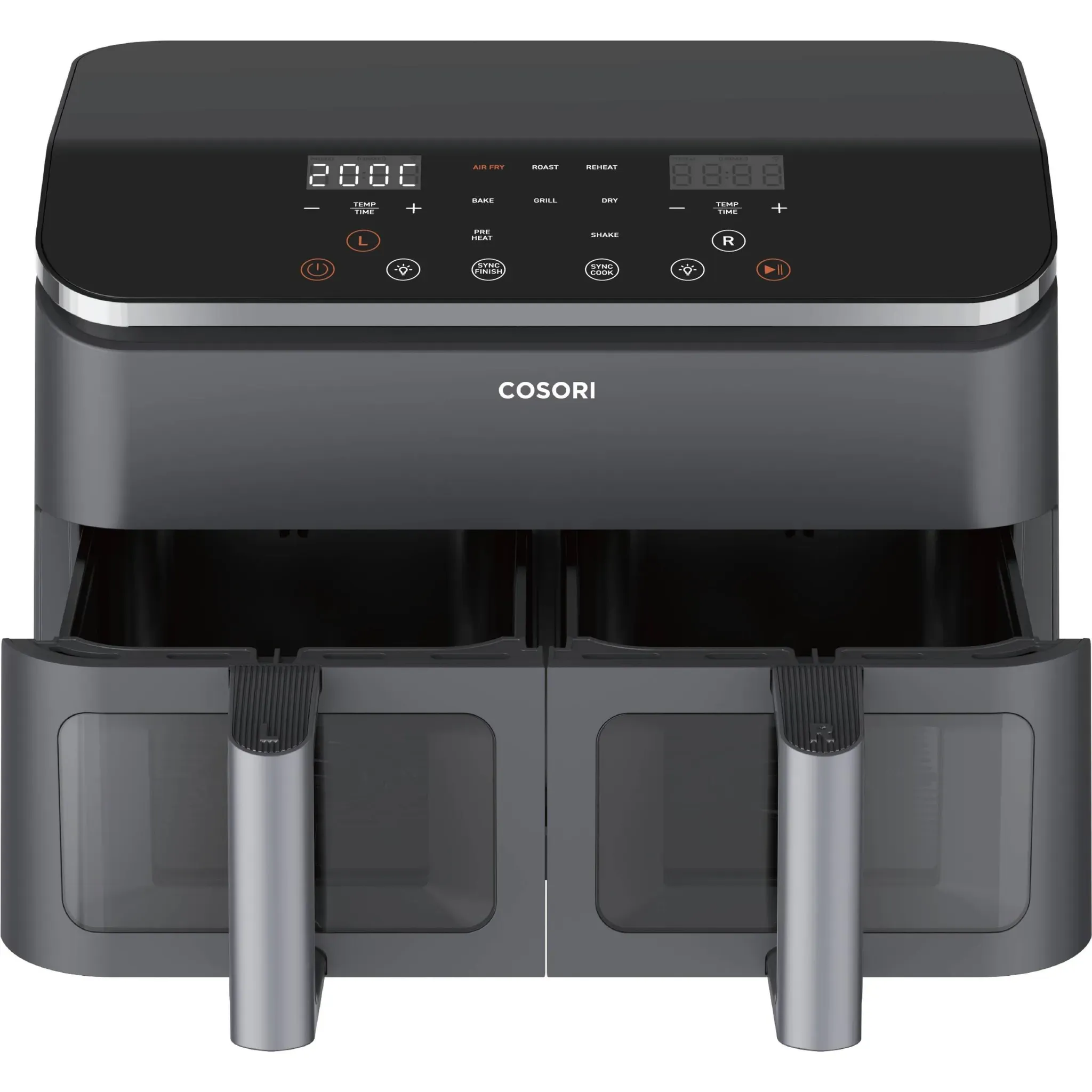 Auf Lager Versand durch AmazonCOSORI Airfryer, Testsieger der Stiftung Warentest, Heißluftfritteuse 2 Kammern, 8,5L Heissluftfritteuse mit Sichtfenster, Metall-Innenraum reduziert Kunststoffkontakt