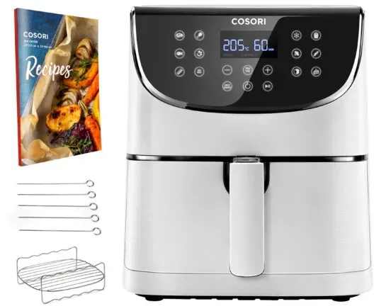 Auf Lager Versand durch AmazonCOSORI Heißluftfritteuse CP158-AF, Testsieger 2024 Stiftung Warentest, 11-in-1 Airfryer mit Shake-Reminder, 100 Rezepte, 55 Prozent energiesparend, spülmaschinenfeste Körbe, Weiß