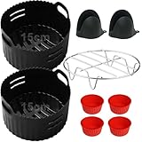 Kategorie: Küchengeräte-Zubehör - BYKITCHEN - Passend für kleine 2L-Heißluftfritteusen – 200 Stück 14 cm Innendurchmesser und 18,5 cm Außendurchmesser, Höhe: 4,5 cm . Speziell entwickelt für kompakte Heißluftfritteusen für 2 L bis 3,5 L 1–2 Personen, z. B. Chefman 2L Mini-Fritteuse, Midea 2L, Cosori 2L SAUBERER LUFTFRITTIERER: Keine Löcher und speziell in Schalenform gestaltet – verhindert, dass der Korb fettig wird und Rückstände bleiben. Hält Seiten und Boden der Heißluftfritteuse nahezu makellos. Kein Waschen nach jeder Nutzung nötig. Die verbesserten Airfryer-Papiere verfügen über Laschen, mit denen sich das Essen leichter auf den Teller übertragen lässt PREMIUM-AIRFRYER-EINLAGEN: Hergestellt aus 100 % lebensmittelechtem Zellstoff mit antihaftbeschichteter Oberfläche. Gesund, antihaftend, fett- und wasserabweisend, nicht saugfähig und zu 100 % sicher für den täglichen Gebrauch HITZEBESTäNDIG & EINFACH ZU VERWENDEN:Hitzebeständig bis 450 °F (232 °C), mikrowellen- und ofenfest. Diese antihaft-Einweg-Airfryer-Filter sind alle schalenförmig und exakt passend – kein Schneiden oder Falten nötig. Einfach in den Korb legen und nach Gebrauch entsorgen. WARNUNG:Legen Sie ausreichend Lebensmittel auf die Einlage, um zu verhindern, dass sie vom Heizelement angesogen oder verbrannt wird VIELSEITIGE ANWENDUNG: Diese quadratischen Einweg-Backpapiere für die Heißluftfritteuse eignen sich perfekt zum Backen oder Kochen verschiedenster Speisen wie Pommes, Hähnchen, Kuchen, Fleisch u. v. ... ![]() ![]() 2 Stück Silikonform Heißluftfritteuse Airfryer Zubehör für Chefman 2L Mini/Cosori 2L/Midea 2L/aeco Cube 2.0, Wiederverwendbare Air Fryer Silikon Einsatz für 1L ? 2L,Accesories Airfryer