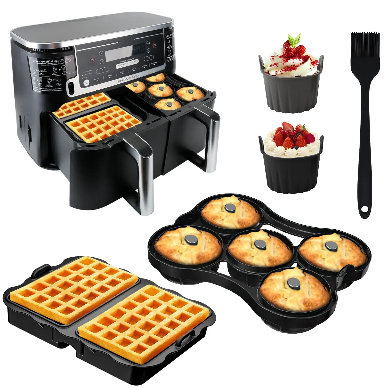 Auf Lager Versand durch Amazon5 Stück Ninja Heißluftfritteuse Zubehör, Mini Gugelhupf Backform für Ninja AF400EU, AF500EU, SL400EU und Cookwise 9L Cosori 8.5L Heißluftfritteuse, Wiederverwendbare Waffeln, Muffin und Kuchenform
