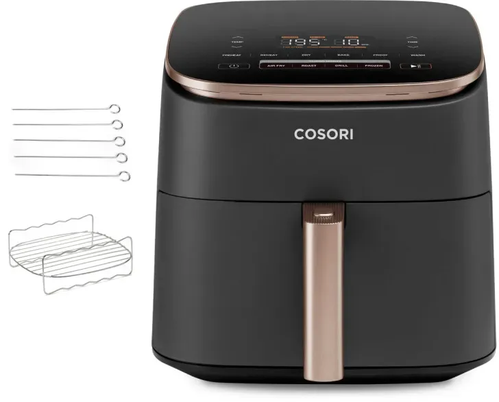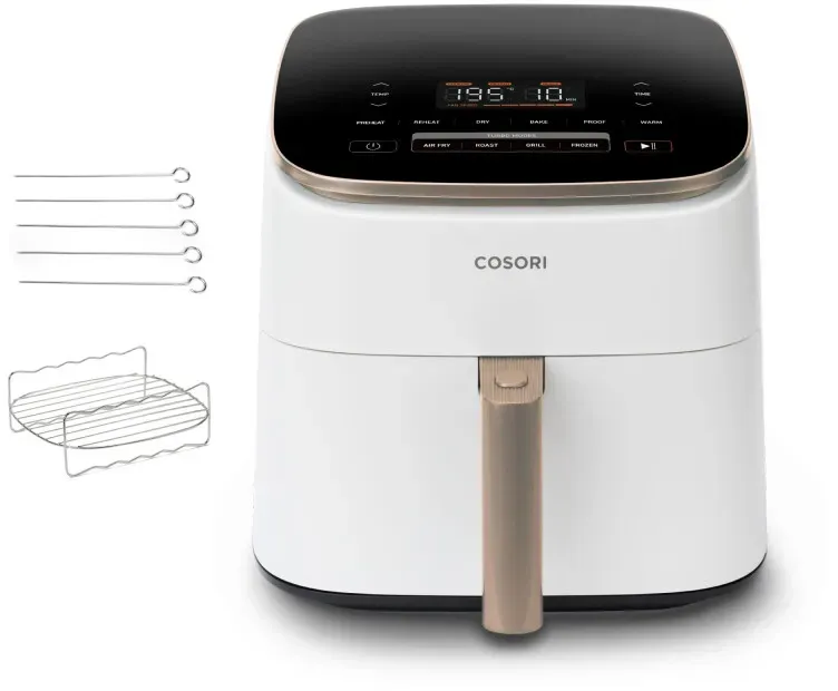 ![]() ![]() Cosori Turboblaze Airfryer Heißluftfritteuse, 9-in-1 Air Fryer XXL 6L, leiser DC Motor mit 5 Geschwindigkeitsstufen, Grillen, Backen, Gären, Dehydrieren, Tiefkühlen, 87 Rezepte, 64% energiesparend