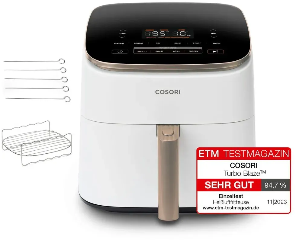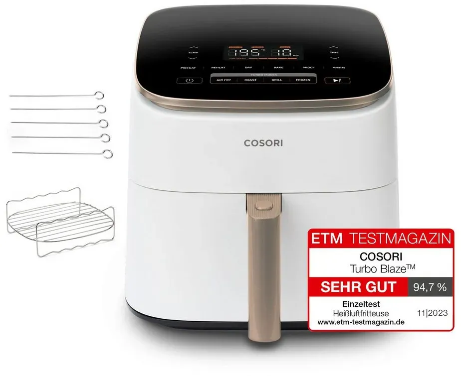 4 Händlerangebote bei billiger.de - Kategorie: Fritteusen - COSORI - Farbe & Material Farbe , Weiß, Ausstattung Mitgeliefertes Zubehör , Cosori CAF-DC602-WEUR TurboBlaze Heißluftfritteuse Standardlieferung des Herstellers Bedienungsanleitung, Product Compliance WEEE-Reg.-Nr. DE , 89633988, - GTIN:0810123674206 Kaufland.de bietet die weiße XXL Turbo Blaze mit 6L und 1725W für 144.63 Euro an, eine gute Wahl für eine leistungsstarke Heißluftfritteuse. ![]() ![]() Cosori Heißluftfritteuse XXL Turbo Blaze, 6L Airfryer, 30 -230 , Kompakt, 1725 W, 5 Geschwindigkeitsstufen&9 FunktionenCooking Charts, Energiesp... - Weiß