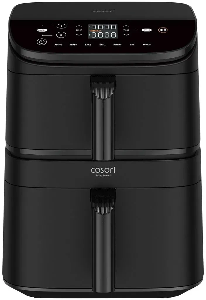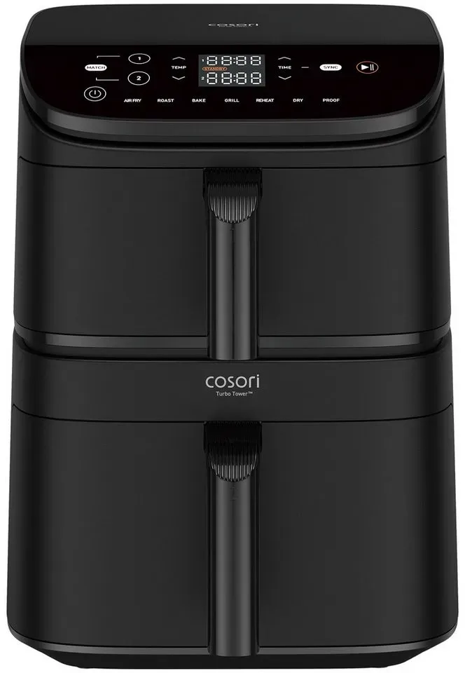 Auf Lager Versand durch AmazonCOSORI Turbo Tower Pro Airfryer, Keramikbeschichtung Heißluftfritteuse 2 Kammern, 10,8L Heissluftfritteuse mit DualBlaze, Ohne Teflon Beschichtung, Automatische Luftstrom-Regulierung