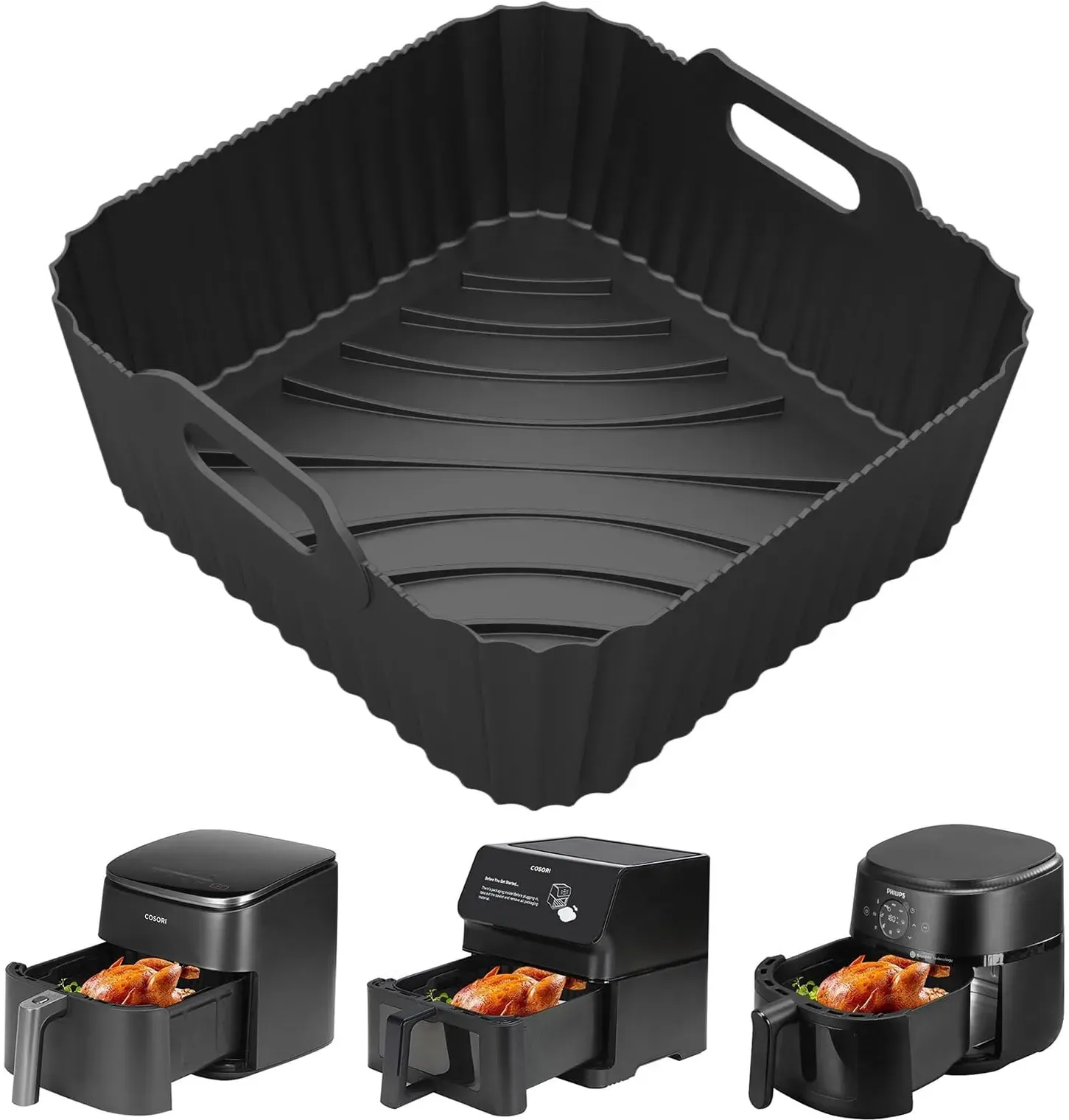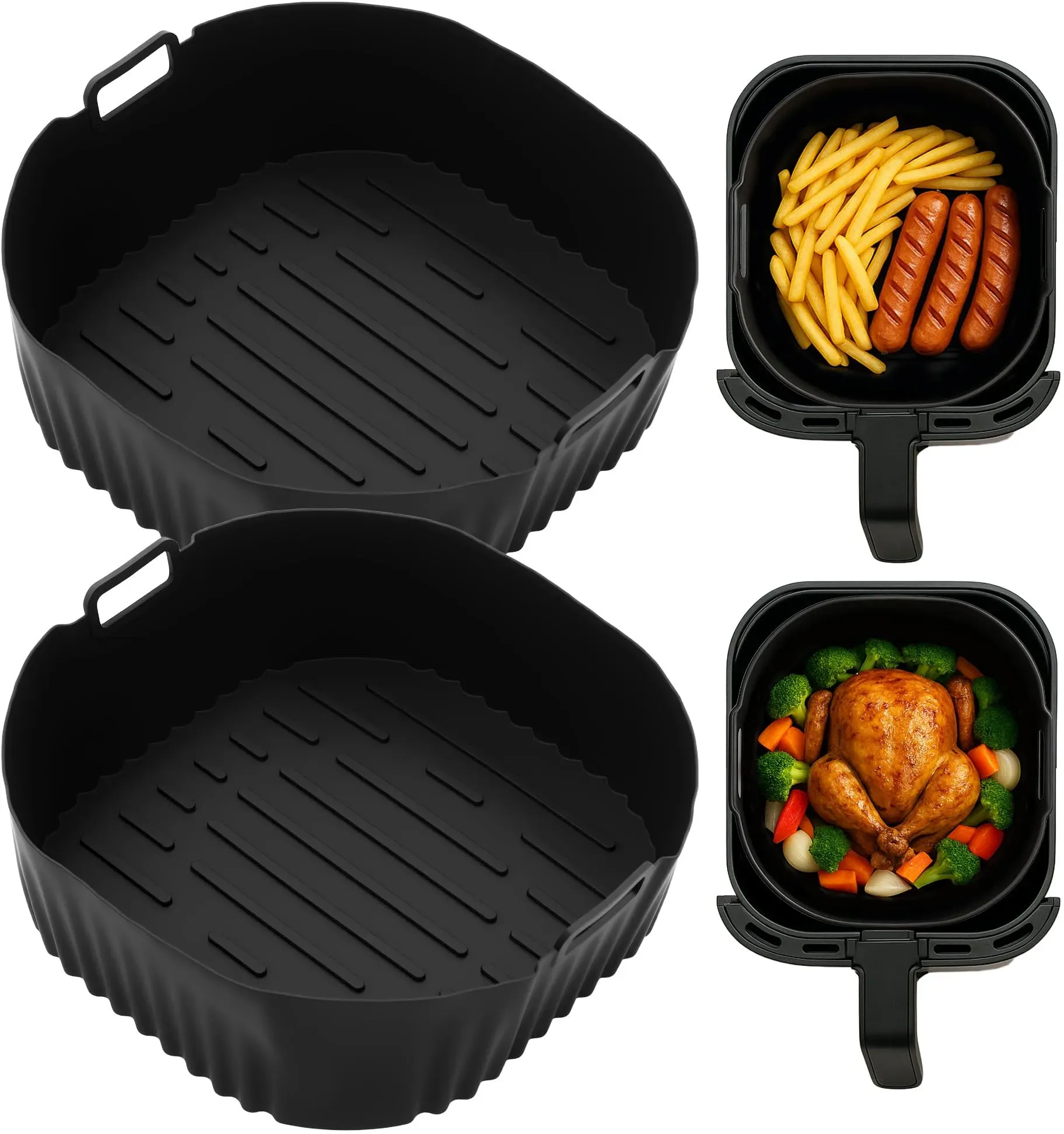 Auf Lager Versand durch Amazon2 Stück Airfryer Silikonform Heißluftfritteuse,Airfryer Zubehör für COSORI TurboBlaze 5,5L/6L/6.2L,Air Fryer Silikon Einsatz,Fritteusenzubehör,Backform Zubehör für Cosori CP158-AF,CAF-R901-AEU