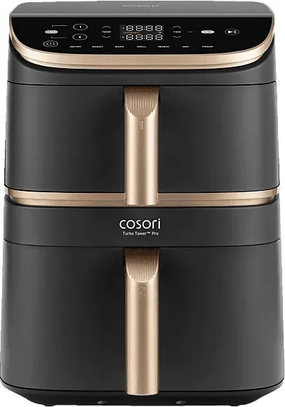 Zustand: Neu - node 2 - COSORI Cosori - TF101S - EAN: 0810123674664 - ð——ð˜‚ð—®ð—¹ð—•ð—¹ð—®ð˜‡ð—²-ð—§ð—²ð—°ð—µ: Mit 4 Heizelementen und bis zu 240€¯°C sorgt sie für eine gleichmäßige Garung - deutlich besser als bei herkömmlichen Modellen mit nur 2 Heizelementen ð—™ð—¹ð—²ð˜ ð—¶ð—¯ð—¹ð—² ð—žð—®ð—ºð—ºð—²ð—¿ð—»: Der 10L Frittierkorb lässt sich mit einem Trenngitter in zwei 5L Bereiche teilen - 10L für große Koteletts, 2 x 5L für zwei Gerichte ð—¦ð˜ð—²ð˜‚ð—²ð—¿ð˜‚ð—»ð—´ ð—½ð—²ð—¿ ð—”ð—½ð—½: Nach der WLAN-Verbindung lässt sich die Fritteuse per VeSync-App fernsteuern und der Kochfortschritt verfolgen ðŸ³ðŸ¬ ð—¢ð—»ð—¹ð—¶ð—»ð—²-ð—¥ð—²ð˜‡ð—²ð—½ð˜ð—² : Verfügbar in der VeSync-App , erstellt von Profi-Köchen und Ernährungswissenschaftlern ð—˜ð—»ð—²ð—¿ð—´ð—¶ð—² ð˜€ð—½ð—®ð—¿ð—²ð—»: Die Dual Blaze-Technologie von COSORI reduziert den Energieverbrauch um 45 Prozent und kocht 65 Prozent schneller ð—˜ð—»ð˜ð˜„ð—¶ð—°ð—¸ð—²ð—¹ð˜ ð˜ƒð—¼ð—» ð—–ð—¢ð—¦ð—¢ð—¥ð—œ : COSORI sorgt durch stetige technologische Innovation für ein noch besseres Kocherlebnis - bei Amazon.de Die Cosori Turbo Tower Pro Smart ist eine smarte Heißluftfritteuse mit 2630 Watt und App-Steuerung, die höchsten Komfort bietet. ![]() ![]() COSORI CAF-DC123S-DDER Turbo Tower Pro Smart Heißluftfritteuse 2630 Watt Dunkelgrau/Gold