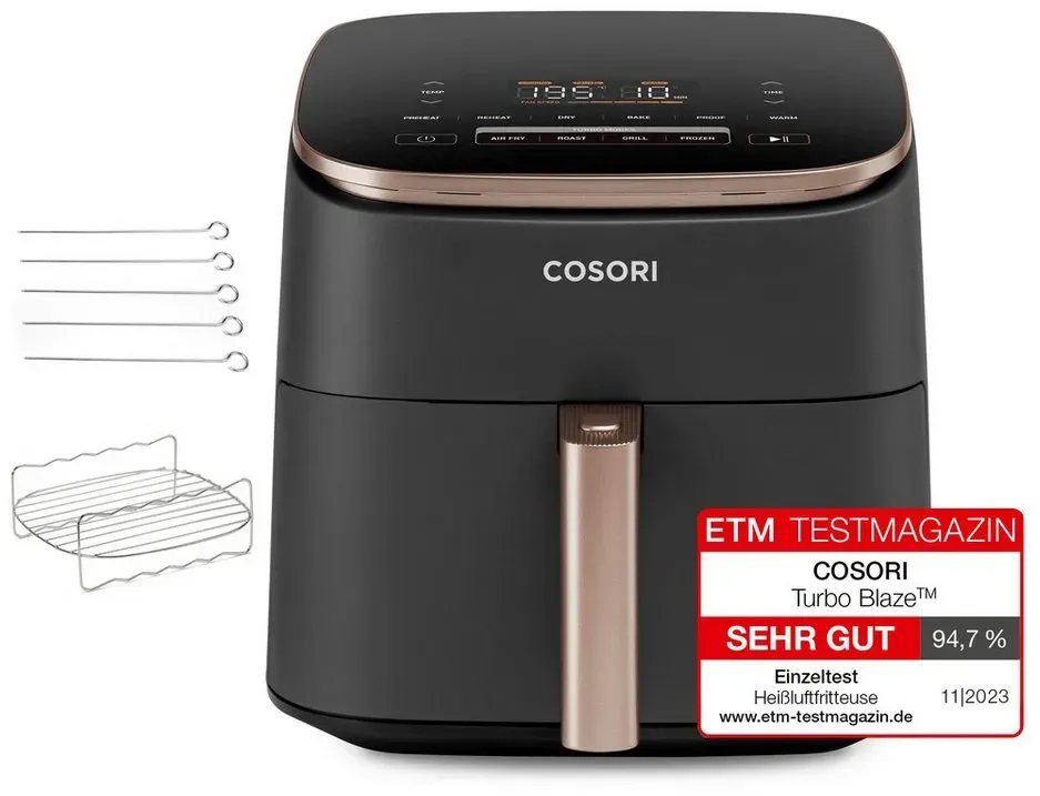 ![]() ![]() Cosori Heißluftfritteuse XXL Turbo Blaze, 6L Airfryer, 30 -230 , Kompakt, 1725,00 W, 5 Geschwindigkeitsstufen & 9 Funktionen, DC-Motor, Energiesparend schwarz