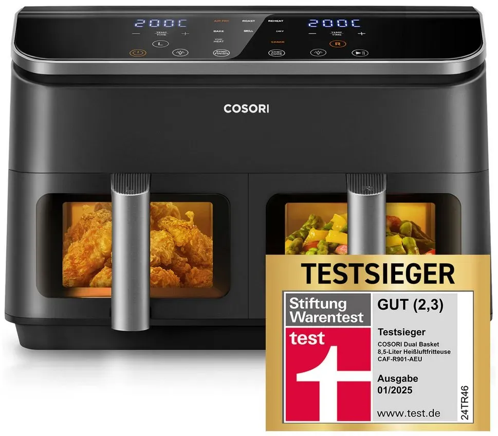 ![]() ![]() Cosori Heißluftfritteuse DualBasket, Doppelkammer, 8.5L Max Airfryer+Zubehör, 50+Online Rezepte, 1750,00 W, 8 in 1 Funktionen, Sichtfenster, Energiesparend, Schwarz schwarz