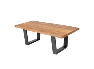 Tische Tischplatten Möbel Wohnzimmermöbel Beistell- und Couchtische Couchtische Tische & Stühle - EAN:4250950238954 - Der Couchtisch ist 115 cm lang, 60 cm breit und 40 cm hoch und überzeugt mit einer massiven Tischplatte aus Akazie und einem schwarzen Kufengestell. Dank dieses modernen und gleichzeitig schlichten Designs ist der Couchtisch ein Hingucker für jeden Innenraum. Der Couchtisch hat eine Tischplatte aus robustem und hochwertigem Akazienholz mit sanft geschwungen Kanten. Das zeitlose Design wird durch ein schwarzes Kufengestell abgerundet. Dank des schlichten Designs lässt sich der Couchtisch ganz einfach mit unterschiedlichen Einrichtungsstilen sowie Farben kombinieren. Egal ob im Wohnzimmer, im Schlafzimmer oder im Flur, der Couchtisch ist vielfältig einsetzbar und ist dabei immer ein ganz besonderes Gestaltungselement. - gefunden von Kelkoo Dieser Couchtisch von Sklum besticht durch sein ansprechendes Design und die hochwertige Verarbeitung von Akazienholz. Manomano.d e