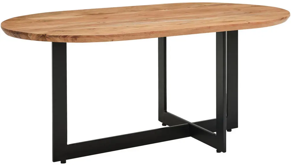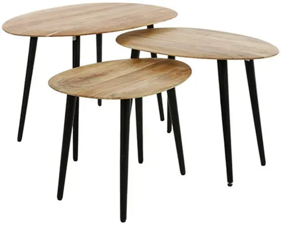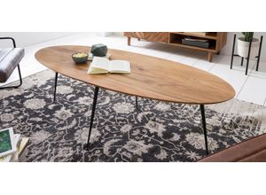 keine Angabe Gewöhnlich versandfertig in 7 bis 8 TagenLEBENSwohnART Design Couchtisch BELLEZA 60cm Natural Akazie Schwarze Metallbeine dreieckig oval