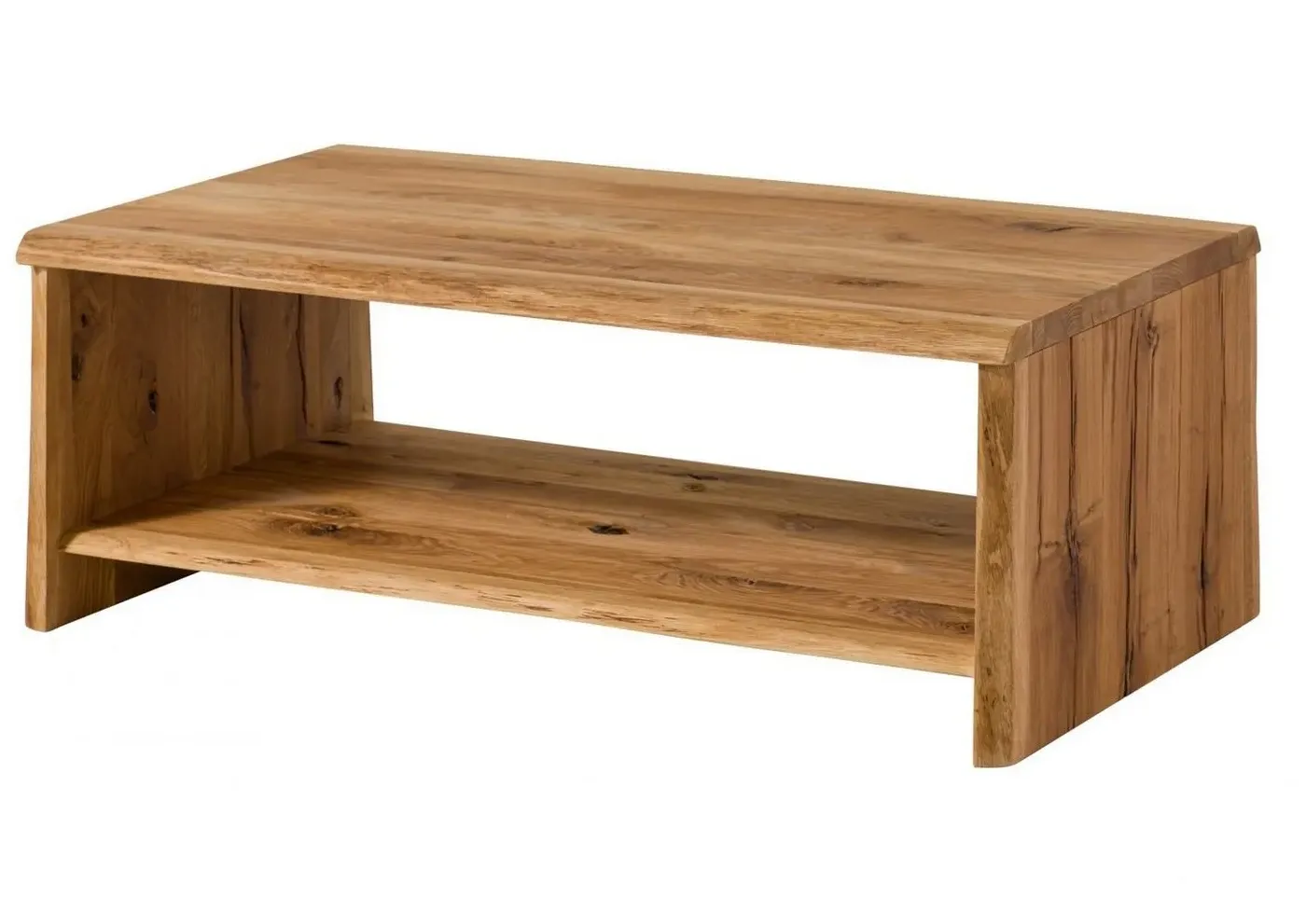 Kategorie: Couchtische - Sam - GTIN:4255854228643 - Exklusiver Couchtisch Der in Handarbeit gefertigte Tisch hat eine 115 x 65 cm große Tischplatte, welche als Ablagefläche für Fernbedienungen, Dekoration, Snacks oder Getränke genutzt werden kann. Dadurch sind gemütliche Fernsehabende mit Freunden vorprogrammiert. Echte Baumkante Besonderes Highlight des Couchtischs sind die Tischkanten der oberen Platte, die den natürlichen Formen eines Baumes entsprechen und direkt aus dem Baumstamm geschnitten wurden. Da der Tisch ein reines Naturprodukt ist, kann es zu Astlöchern oder unterschiedlichen Farbnuancen kommen. Mit Ablagefläche Der robuste Couchtisch überzeugt nicht nur durch seine attraktive Erscheinung, sondern auch durch sein Platzangebot. Die Ablage unter der Tischplatte bietet genügend Platz, um Bücher und Zeitschriften abzulegen. Die Kanten der unteren Ablage besitzen keine Baumkante. Massives Eichenholz Der Beistelltisch besteht aus massivem Eichenholz und ist mit einem schützenden Klarlack versiegelt. Wildeiche zeichnet sich durch ihre ausdrucksstarke Maserung und hohe Härte aus ein langlebiges, stabiles und gleichzeitig edles Naturmaterial, das jedem Tisch eine warme, individuelle Note verleiht. Pflegeleicht Die Oberfläche lässt sich leicht reinigen und pflegen. Verschmutzungen können mit einem mäßig feuchten Tuch problemlos entfernt werden. Regelmäßige Pflege erhält die natürliche Frische und die edle Ausstrahlung des Möbelstücks. - 399,00 Euro bei Amazon ... Ein großer Couchtisch aus massiver Wildeiche, der viel Ablagefläche bietet und durch seine natürliche Maserung besticht. ![]() ![]() Massivmoebel24 Couchtisch Wildeiche 120x70x45 natur geölt pure oak 308