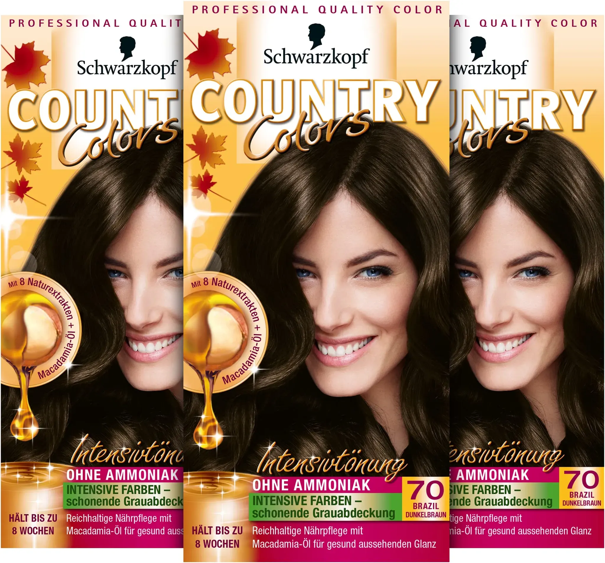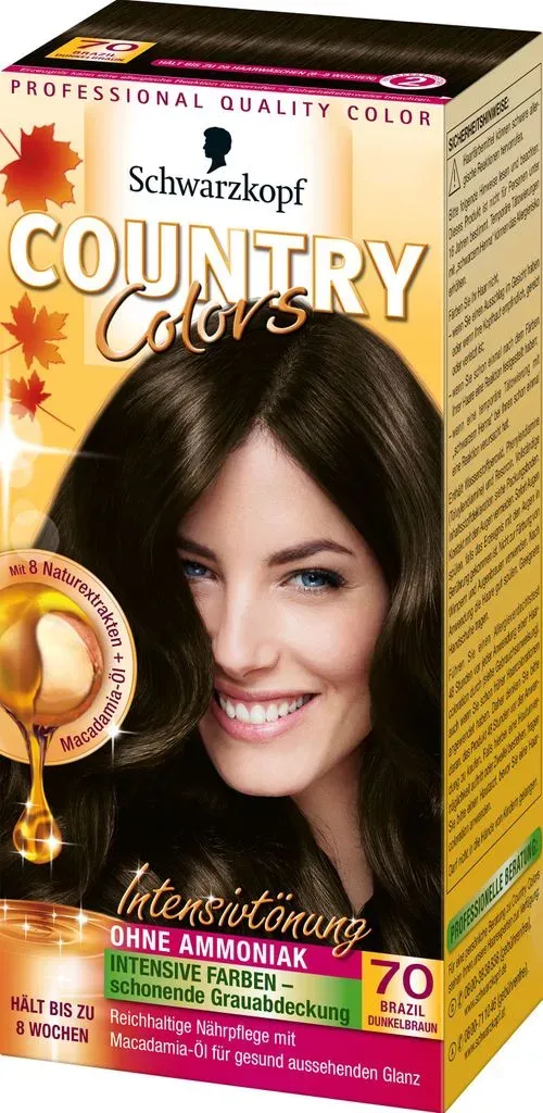 Zustand: Neu - Haushalt, Gesundheit & Körperpflege - Country Colors Henkel Beauty Care - - EAN: 4015000523691 - Intensivtönung mit Macadamia-Öl Ohne Ammoniak Intensive Farben - schonende Grauabdeckung Reichhaltige Nährpflege für gesunden Glanz Hält bis zu 8 Wochen - Verkäufer: Duftfeeling (Preise inkl. MwSt.) im amazon.de Marketplace ![]() ![]() Henkel COUNTRY COLORS Intensiv-Tönung 70 Brazil Dunkelbraun Stufe 2 123ml