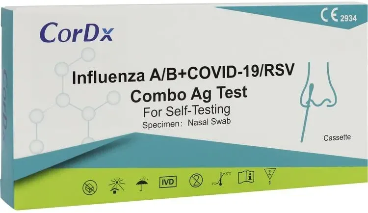 Der angezeigte Preis könnte seit dem letzten Update gestiegen sein - EAN: 6974246460048 - Antigen-Schnelltest zum qualitativen Nachweis des Coronavirus (SARS-CoV-2) - schnelle und zuverlässige Testergebnisse innerhalb von 10-15 Minuten - Probeentnahme im vorderen und hinteren Nasenbereich - 97,04% Sensitivität, 99,44% Spezifität -... - Zustand: NEW - bei Metro.de - gefunden von Buycentral Dieser Test bietet eine umfassende Diagnose für RSV, Influenza A/B und COVID-19 in einem einzigen Testkit. ![]() CorDx RSV+Influenza A/B+Covid-19 Combo Ag Test