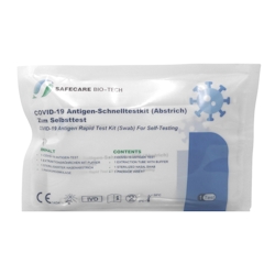 Verfügbarkeit: Auf Lager - Kategorie: Medizinischer Bedarf - Wondfo - Schnelles Ergebnis: Unsere Covid-19-Tests können innerhalb von 15 Minuten feststellen, ob eine Person COVID hat oder nicht. Der Test kann zu Hause durchgeführt werden, ohne dass Sie Ihre Probe in ein Labor schicken müssen. Einfach zu bedienen: Lesen Sie die Kurzanleitung des Produkts Schritt für Schritt. Der gesamte Prozess ist sehr einfach und keine Unannehmlichkeiten. Geeignet für Erwachsene und Kinder. Selbsttest für Corona zu Hause: Mit diesem Selbsttest können Sie Covid-19 bequem von zu Hause aus nachweisen. Für schnelle und einfache Ergebnisse. Sie erhalten: Wondfo Covid-19 Antigen Test enthält 5 verpackte Einwegtests, 5 Extraktionspuffer, 5 sterile Einwegtupfer, 5 Abfallbeutel und Anleitung. Verlässlichkeit: Der Wondfo Covid-19-Antigen-Test ist eine kostengünstige und bequeme Möglichkeit, den Test ohne jegliche Belastung durchzuführen. Nota: Das Ablesen der Testergebnisse vor 15 Minuten oder nach 20 Minuten kann zu falschen Ergebnissen führen. - 3,99 Euro bei Amazon Marketplace Health & Personal Care - gefunden von billiger.de Ein einzelner Safecare Nasenabstrich-Test zu einem erschwinglichen Preis für den sofortigen Bedarf. ![]() SAFECARE BIO-TECH Safecare Covid-19 Antigen-Schnelltest 1 Stück Nasenabstrich Corona Antigentest