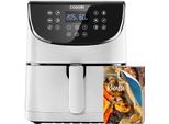 Cosori - EAN: 0810043370097 - . 5,5 Liter Fassungsvermögen mit Antihaftbeschichteter Garkammer . 11 voreingestellte Programme für Fleisch, Gemüse, Tiefkühlkost, Meeresfrüchte, etc. . Ohne oder mit wenig öl zur schnellen und gesunden Zubereitung . Maße (BxHxT) 30,0 x 32,0 x 30,0 cm, weißes Kunststoffgehäuse und mit einem Gewicht von 5,4 kg . Heißluft-Zirkulationstechnik mit einstellbaren Temperaturbereich bis 205 C und energiesparend mit 1700 Watt Leistung . Komfortable Bedienung über LED-Digitaldisplay mit Touch-Bedienfeld . Individuell einstellbarer Timer, sowie integrierter Shake-Reminder (Erinnerung zum Wenden des Gargutes nach der Hälfte der Garzeit) . Leichte Reinigung durch spülmaschinenfesten Frittierkorb und Einsatz . Lieferung inklusive Spießgestell, 5x Spieße und Rezeptbuch Merkmale: Fassungsvermögen: 5,5 Liter Ausführung: 1 Kammer Größe: XXL - bei bueromarkt-ag.de - aus Yadore Produktdaten Diese schwarze digitale Airfryer-Innovation bietet ein gutes Preis-Leistungs-Verhältnis und moderne Funktionen. ![]() kaufland.d e COSORI Heißluftfritteuse 5.5L Schwarz Digital Airfryer Kochtopf Innovation CP158-AF