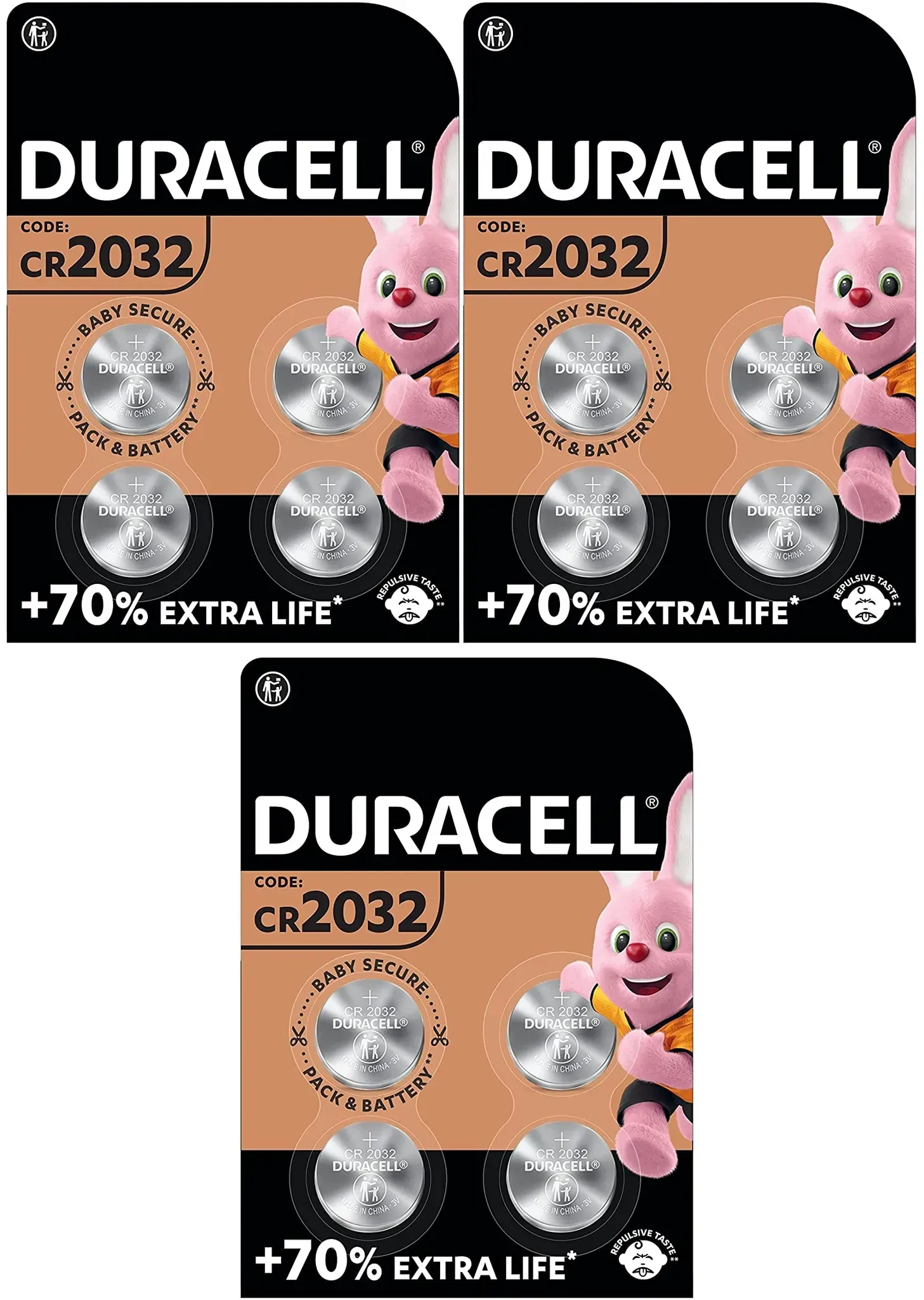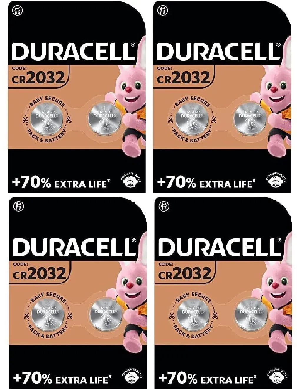 Zustand: Neu - Einwegbatterien - Duracell - 81575811 - - DURACELL KNOPFZELLEN CR2032: Batterien CR2032 sind für die Verwendung im APPLE AIRTAG EMPFOHLEN, 2032 Knopfzellen sind außerdem geeignet für die Verwendung in anderen Geräten wie Schlüsselanhängern, Heim-Geräten, Fitness- und medizinischen Geräten LEBENSDAUER: bis zu 70 % zusätzliche Lebensdauer* KINDERSICHERHEIT: Unsere sicherste Batterie aller Zeiten** in Kooperation mit der European Association of Paediatrics (Europäische Akademie für Kinderheilkunde), BABY-SECURE-TECHNOLOGIE: Eine ungiftige, bitter schmeckende, ringförmige Schicht mit Bitrex auf der Vorderseite der Zelle soll dabei helfen, Verschlucken durch Babys oder Kleinkinder zu vermeiden BABYSICHERE VERPACKUNG: Mit einem Doppelblister, der sich ohne Schere schwer öffnen lässt 1 LAGERUNGS Unsere Technologien halten ungenutzte Batterien CR2032 für bis zu 1 in ihrer Verpackung frisch * im Vergleich zur durchschnittlichen Mindestlebensdauer im Electronic-Key-IEC-Standardtest für CR2032 Batterien; Die Ergebnisse können je nach Gerät und Nutzungsmuster variieren **gilt für 2032, 2025, 2016 dank des bitteren Geschmacksrings auf der Zelle und der babysicheren Verpackung - bei Amazon.de Dieses 8er-Pack ist eine gute Option für Nutzer, die einen größeren Vorrat benötigen und dabei sparen möchten. ![]() ![]() 8 x Duracell CR 2032 Lithium (4 Blister mit je 2 Batterien) 8 Batterien