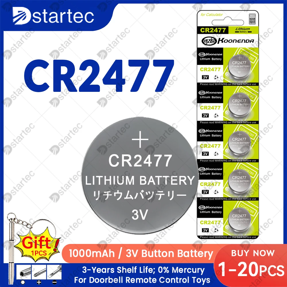 4 Händlerangebote bei billiger.de - Kategorie: Batterien & Akkus - Akyga - Technische Daten Kapazität , 1000 mAh, Spannung , 3.00 V, Maße & Gewicht Breite , 24.00 mm, Höhe , 7.70 mm, Gewicht , 10.00 g, Hinweise Warnhinweise , n/a, - GTIN:5906574243834 Für 2,45 Euro erhalten Sie hier ein 2er-Pack CR2477 Lithium-Batterien, was ein gutes Preis-Leistungs-Verhältnis bietet. ![]() 2 TEILE/LOS CR2477 2477 3V knopfbatterie lithium-batterie
