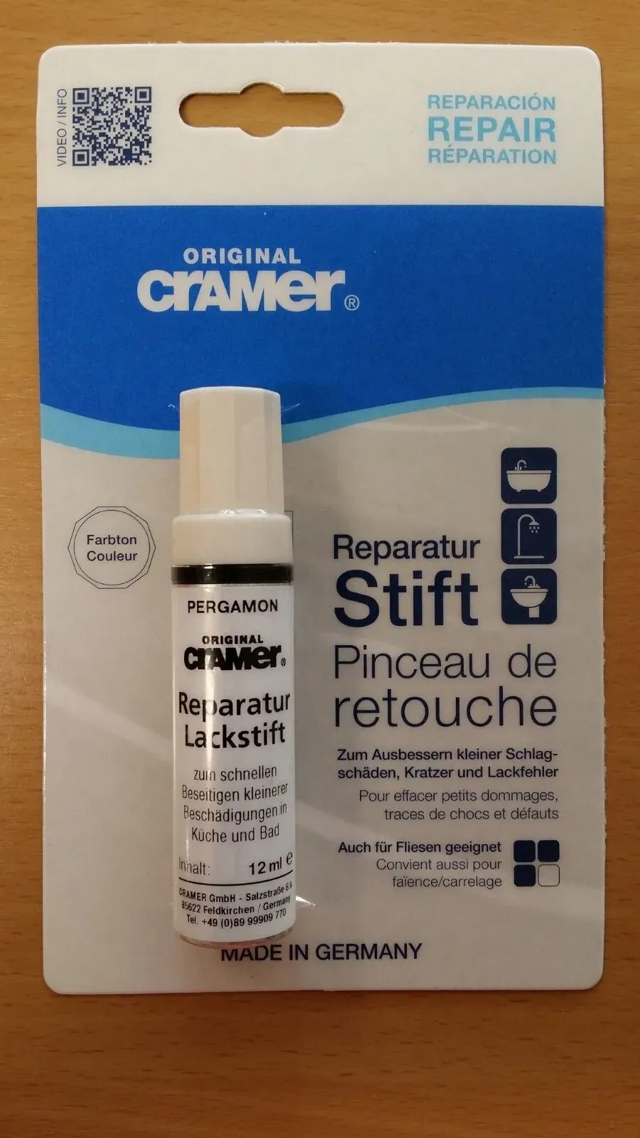 5 Händlerangebote bei billiger.de - Kategorie: Reinigungsmittel - Cramer - Cramer Reparatur-Stift 12ml pergamon für Keramik - Email - Acryl Farbe: PERGAMON Beschreibung: Der Reparatur-Stift ist ein Ein-Komponentenspeziallack für Küche und Bad. Als Füllmasse und Decklack in einem, eignet sich der Lackstift zum ausbessern kleiner Schlagschäden, Kratzer und Lackfehler an Sani - GTIN:4027316152007 Dieser Lackstift in Reinweiß ist eine vielseitige Wahl für die Reparatur von hellen Oberflächen. Manomano.d e