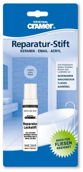Kategorie: Farben & Lacke - Cramer - GTIN:4006596661508 - Einfache Handhabung Schutz gegen Korrosion und Rost Farbtongetreue Ausbesserung Schnelle und einfache Pinselapplikation Farbe: Weiß - 15,54 Euro bei Amazon Marketplace Home Improvement - gefunden von billiger.de ![]() ![]() Cramer Heizkörper-Lackstift 12ml, weiß RAL 9016