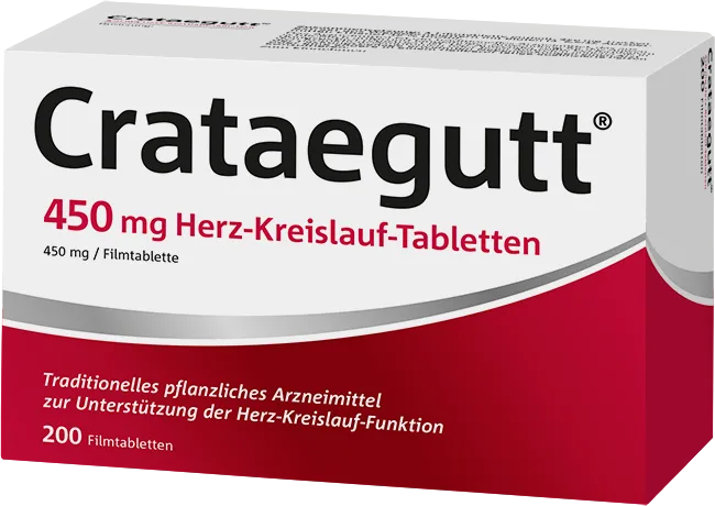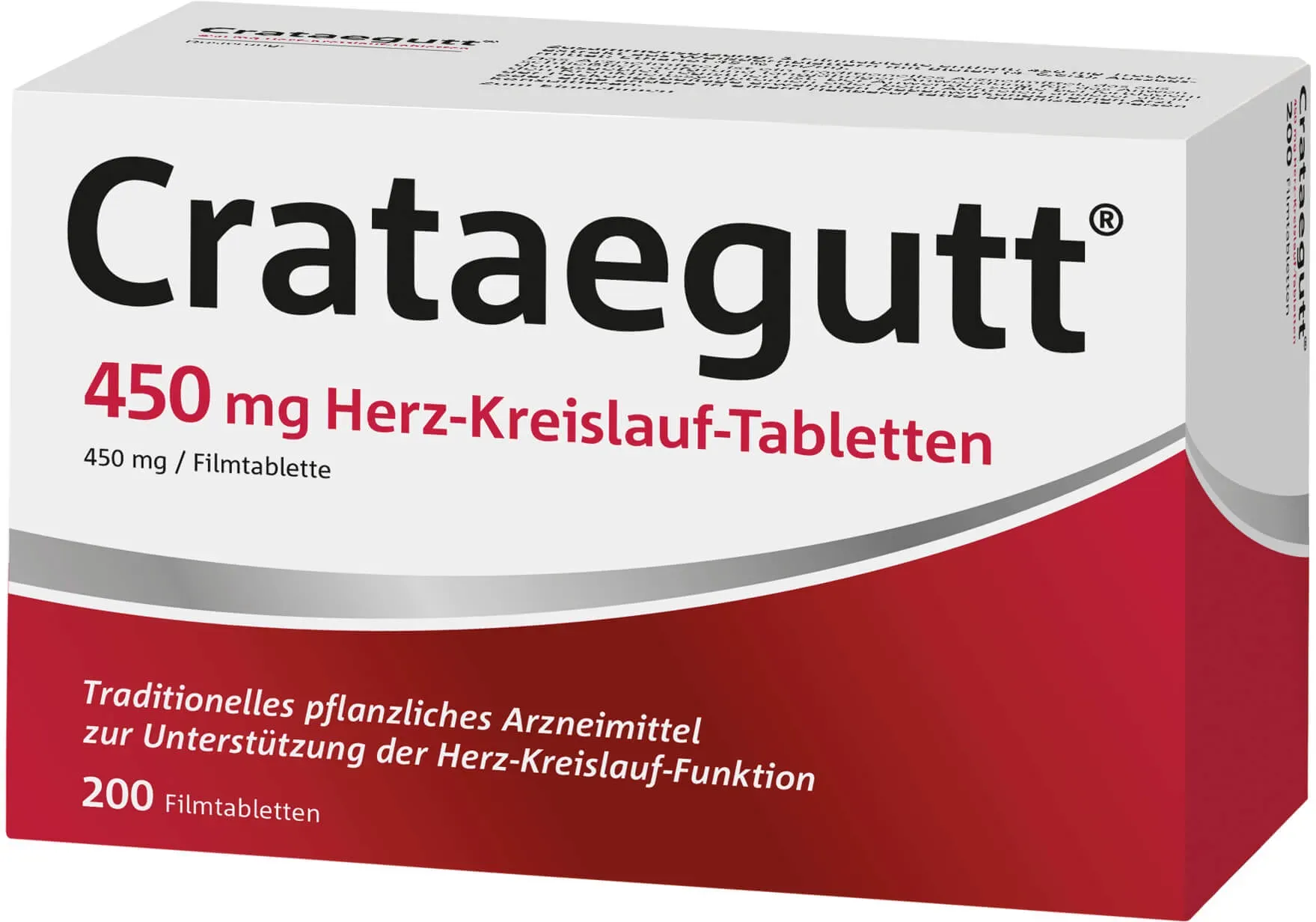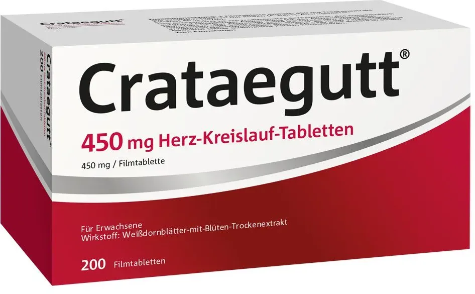 Verfügbarkeit: 1-3 Werktage - Kategorie: Arzneimittel - Dr. Willmar Schwabe - GTIN:4150140645411 - PZN:14064541 - Wichtige Hinweise (Pflichtangaben): Crataegutt® 450 mg Herz-Kreislauf-Tabletten . Wirkstoff: Weißdornblätter-mit-Blüten-Trockenextrakt. Anwendungsgebiete: Zur Unterstützung der Herz-Kreis... - 57,99 Euro bei Mycare - gefunden von billiger.de Dieses Angebot ist mit 60.91 Euro für 200 Tabletten eine gute Wahl für Amazon-Kunden, die eine groÃ?e PackungsgröÃe suchen. ![]() ![]() Crataegutt 450 mg Herz-Kreislauf-Tabletten | 200 Tabletten | Pflanzliches Arzneimittel zur Unterstützung der Herz Kreislauf Funktion | Weißdorn hochdosiert | Stärkung für Herz und Kreislauf