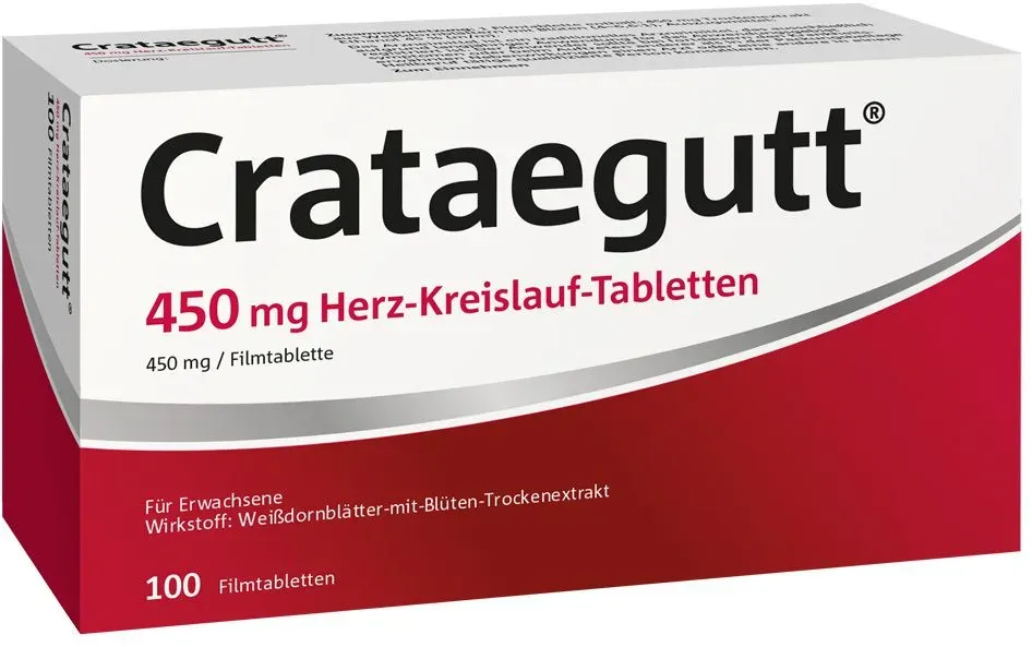 Verfügbarkeit: 1-3 Werktage - Kategorie: Arzneimittel - Dr. Willmar Schwabe - GTIN:4150140645350 - PZN:14064535 - Wichtige Hinweise (Pflichtangaben): Crataegutt® 450 mg Herz-Kreislauf-Tabletten . Wirkstoff: Weißdornblätter-mit-Blüten-Trockenextrakt. Anwendungsgebiete: Zur Unterstützung der Herz-Kreis... - 32,92 Euro bei Mycare - gefunden von billiger.de Dieses Angebot ist mit 33.01 Euro für 100 Tabletten eine gute Wahl für eine mittlere PackungsgröÃ?e. ![]() ![]() Dr. Willmar Schwabe CRATAEGUTT 450 mg Herz-Kreislauf-Tabletten 100 St