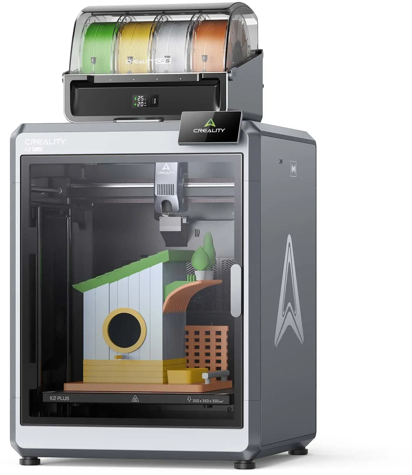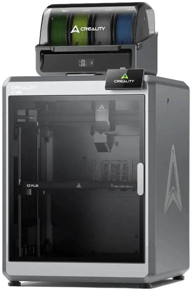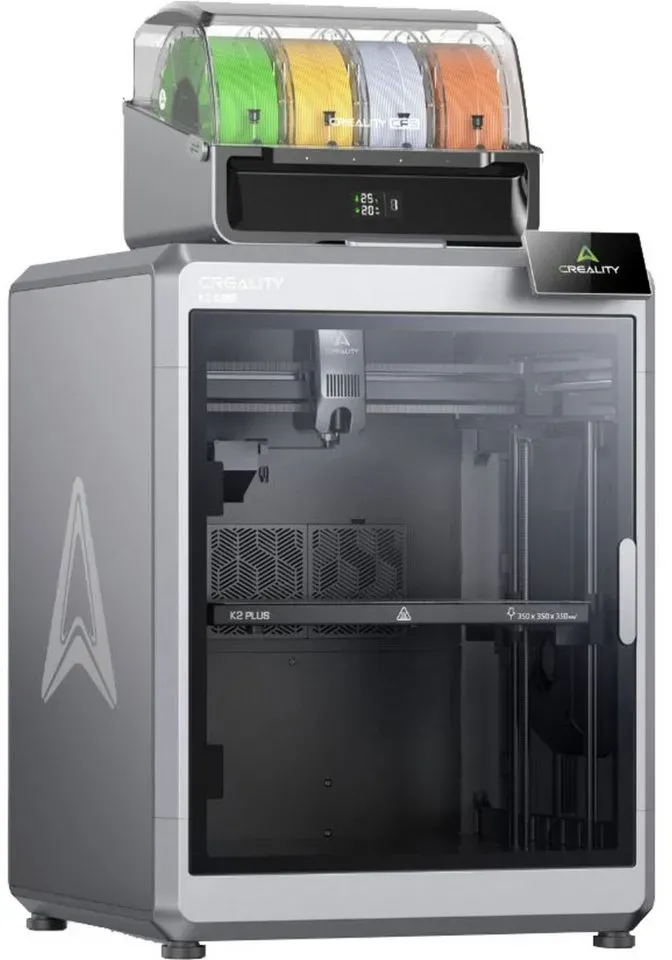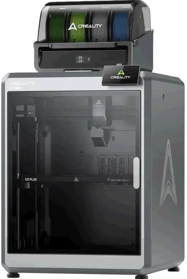 Kategorie: 3D-Drucker - Creality - GTIN:0198549015651 - Revolutionärer 16-Farben-3D-Druck für atemberaubende Kreativität --- Erleben Sie Multicolor-Druck mit bis zu 16 Farben* durch das innovative CFS-System! Dank 4 anschließbarer CFS-Module (eines im Lieferumfang) realisieren Sie komplexe Designs ohne mühsames Nachbearbeiten. *Hinweis: Für volle 16 Farben benötigen Sie 3 zusätzliche CFS-Module. XXL-Bauraum 350x350x350 mm Ihre Ideen kennen keine Grenzen --- Verabschieden Sie sich von Platzproblemen! Der industrielle Matrix -Rahmen aus Flugzeugaluminium und die 5-mm-Heizplatte ermöglichen großformatige Drucke mit präziser Stabilität perfekt für Prototypen, Architekturmodelle oder Serienproduktion. Präzision meets Geschwindigkeit: 30.000 mm/s2 Beschleunigung & 45 dB --- Die 5 FOC-Servomotoren mit 32.768 Mikroschritten/Umdrehung ren 600 mm/s High-Speed-Druck bei museumstauglicher Präzision ( 0,1 mm). Dank dynamischer Lüfter und schalloptimierter Technik arbeitet der K2 Plus leiser als eine Tastatur ideal fürs Home-Office! Smartes Automationssystem Drucken wie ein Profi --- Automatische Neigungserkennung & Belt-Tensioning AI-Kamera mit Fehlererkennung & Zeitrafferfunktion 18 Sensoren überwachen Druckprozess in Echtzeit Aktive Heizkammer bis 60 C für ASA/ABS/PPA-CF-Materialien RFID-Sensor erkennt Hyper PLA/PAHT-CF-Filamente automatisch Premium-Ausstattung für Profianwender --- Apus Direct-Drive-Extruder mit 40mm3/s Flussrate 3-Metall-Nozzle bis 350 C für ... Diese Combo-Version des K2 Plus bietet zusätzlich das CFS-System für Mehrfarbendruck und eine hohe Druckgeschwindigkeit von 600 mm/s. ![]() ![]() Creality K2 Plus Combo 3D Drucker, 3D Printer neues CFS für Mehrfarbendruck, 600 mm/s Hochgeschwindigkeitsdruck, Dual AI-Kamera, vollautomatisches Nivellieren, Bauvolumen 350 350 350 mm