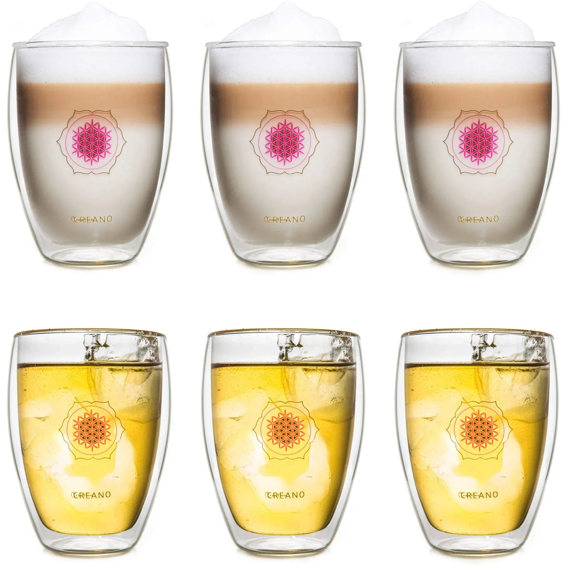 VerfĂŒgbarkeit: Auf Lager - Kategorie: GlĂ€ser - Creano - GTIN:4260123158156 - Das Doppelwand Glass ÂÂCan sieht nicht nur toll aus, es hĂ€lt auch extralang kalt oder warm, je nachdem, ob Du mehr Lust auf kalte MixgetrĂ€nke oder einen warmen Tee am Abend auf dem Sofa hast. FĂŒr jeden Anlass Dein idealer Begleiter: beim Grillen oder Pool an einem Sommertag, Beisammensein mit Freunden oder fĂŒr einen gemĂŒtlichen Tag zuhause Der Bambusdeckel verhindert Tropfen oder Kleckern und vermeidet lĂ€stige Wespen in Deinem Shake an einem lauschigen Sommertag am Pool Das Thermoglas verfĂŒgt ĂŒber ein groĂzĂŒgiges Volumen von 360ml und bietet somit eine Vielfalt an Verwendungsmöglichkeiten. Die mitgelieferte BĂŒrste erleichtert Dir das Reinigen des Glasstrohhalms und des Deckels. Das Trinkglas und den Glas-Strohhalm kannst Du auch bequem in der SpĂŒlmaschine reinigen. Das bruchfeste und hitzebestĂ€ndige Glas ist dafĂŒr bestens geeignet. Bambusdeckel & Strohhalm: Nachhaltig und stilvoll. Cadmium-, Blei- & BPA frei DEUTSCHE MARKEN-QUALITĂ€T: Wir sind ein deutsches Unternehmen. Seit 2006 entwickeln & produzieren hochwertige ErblĂŒhTees, Teekannen, doppelwandige GlĂ€ser u.v.m. - 39,90 Euro bei Amazon Marketplace Home - gefunden von billiger.de Dieses 6er Set mit dem "Blume des Lebens"-Design ist eine stilvolle Geschenkidee oder für den besonderen Anlass. ![]() ![]() Creano doppelwandiges Tee-Glas, Latte Macchiato, Thermobecher Blume des Lebens | 250ml, in exklusiver Geschenkbox 6er Set