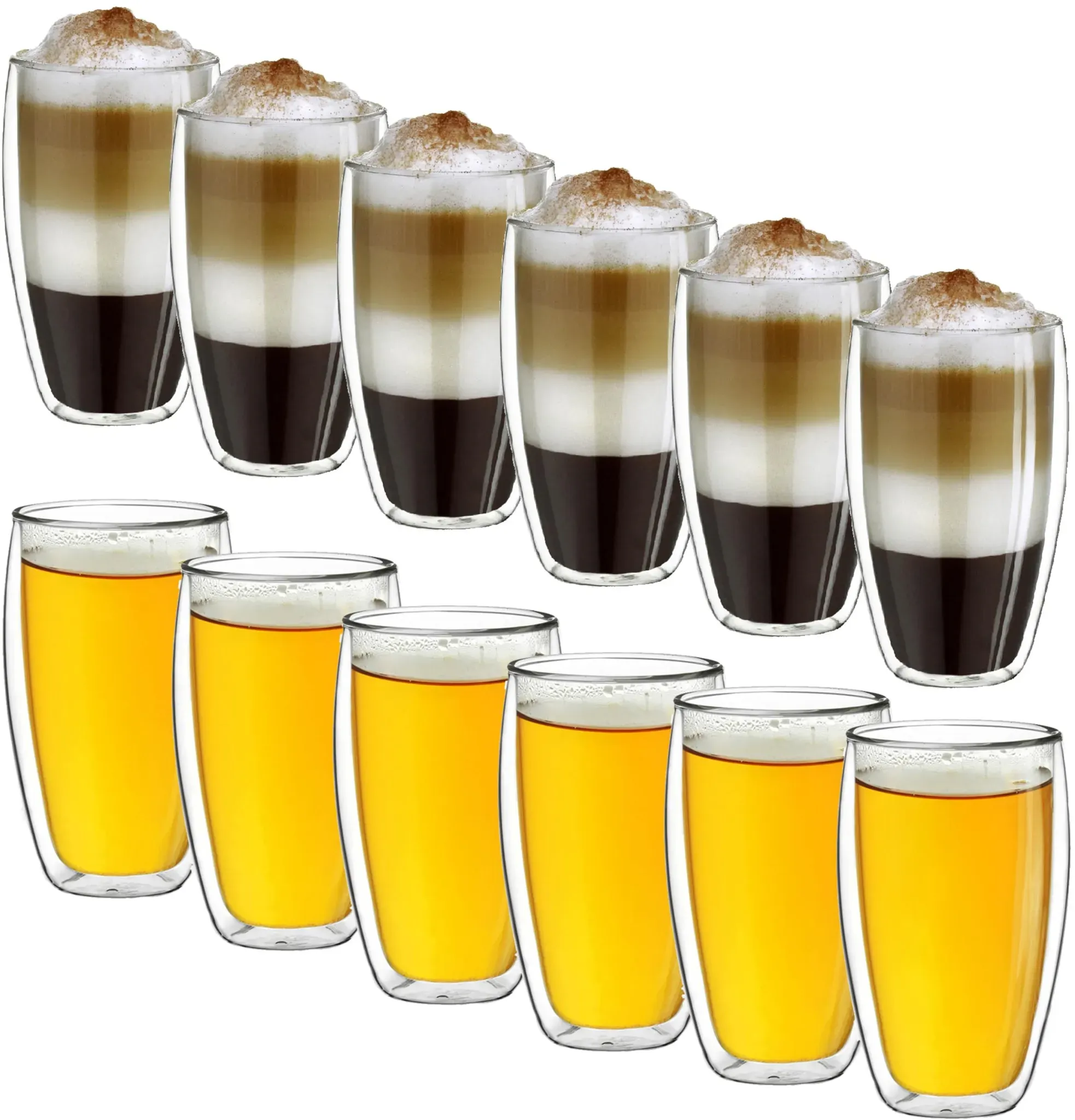 VerfĂŒgbarkeit: Auf Lager - Kategorie: GlĂ€ser - Creano - GTIN:4260123154462 - ANGEBOT: 6x 500ml doppelwandiges Bierglas bzw. Weizenbierglas aus hochwertigem Borosilikatglas, welches kalte GetrĂ€nke lĂ€nger kalt und heiĂe GetrĂ€nke lĂ€nger warm hĂ€lt. Zudem sorgt das Doppelwandglas fĂŒr ein stets gleichmĂ€Ăig temperiertes AuĂenglas, sodass auch ein mögliches Verbrennen der Finger der Vergangenheit angehört. Geliefert wird in einen hochwertigen Geschenkkarton. BESONDERHEITEN: durch den optischem Schwebe-Effekt, scheint das Bier förmlich im Glas zu schweben. AuĂerdem entsteht kein störendes Kondenswasser, somit keine lĂ€stigen RĂ€nder auf dem Tisch beim Genuss von KaltgetrĂ€nken, ideal fĂŒr warme / heiĂe Abende im Sommer, an welchen ein kĂŒhles Bier genau das Richtige ist. MERKMALE: Die MaĂe der TrinkglĂ€ser sind: ca. 12,5cm Hoch x 9,5cm Durchmesser und 14,5cm inkl. dem Henkel, kleine Abweichungen sind Aufgrund der Handarbeit produktionsbedingt möglich. Die IsolierglĂ€ser sind zudem spĂŒlmaschinengeeignet, mikrowellengeeignet, frostsicher & besonders stoĂ- & kratzfest. EINSATZMöGLICHKEITEN: Bierkrug / Bierglas / Weizenbierglas / WeiĂbierglas / Berliner WeiĂe Glas / Kaffeeglas / Teeglas / Milchkaffeeglas / Latte Macchiato Glas / SchĂŒmliglas / Vorspeiseglas / Doppelwandglas / ThermoglĂ€ser / IsolierglĂ€ser / CocktailglĂ€ser / SchĂŒmliglĂ€ser / MilchkaffeeglĂ€ser UNSERE ZUFRIEDENHEITS Zögern Sie nicht uns zu kontaktieren. Bei jeglichen Problemen steht Ihnen ... Dieses große 12er Set mit 400ml Gläsern ist ideal für größere Haushalte oder wenn oft Gäste bewirtet werden. ![]() ![]() Creano ThermoglĂ€ser doppelwandig 400ml ÂÂDG-SHÂÂ, 12er Set, groĂe doppelwandige GlĂ€ser aus Borosilikatglas, KaffeeglĂ€ser, TeeglĂ€ser, Latte Macchiato GlĂ€ser