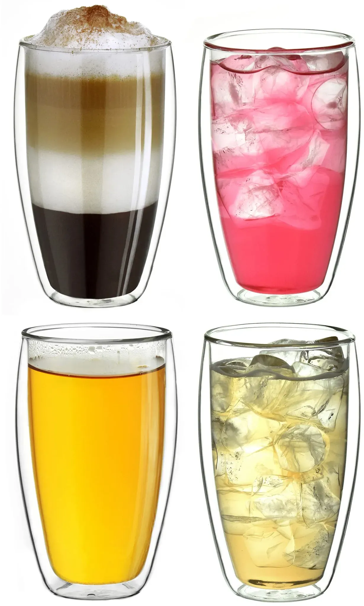 VerfĂŒgbarkeit: Auf Lager - Kategorie: GlĂ€ser - Creano - GTIN:4260123156923 - ANGEBOT: 2x 400ml doppelwandige CappuccinoglĂ€ser bzw. Latte-Macchiato-GlĂ€ser aus hochwertigem Borosilikatglas, welches heiĂe GetrĂ€nke lĂ€nger warm und kalte GetrĂ€nke lĂ€nger kalt hĂ€lt. Zudem sorgt das Doppelwandglas fĂŒr ein stets gleichmĂ€Ăig temperiertes AuĂenglas, sodass auch ein mögliches Verbrennen der Finger der Vergangenheit angehört. GRATIS: 2 hochwertige Creano KrĂ€utertee oder FrĂŒchtetee in Doppelkammerbeutel inklusive. Die Sorten werden aus 9 Blends zufĂ€llig gewĂ€hlt BESONDERHEITEN: Durch den optischem Schwebe-Effekt, scheint das GetrĂ€nk im Glas zu schweben. AuĂerdem entsteht kein störendes Kondenswasser, somit keine lĂ€stigen RĂ€nder auf dem Tisch beim Genuss von KaltgetrĂ€nken, ideal bei der Nutzung als Cocktailglas. MERKMALE: Die MaĂe der TrinkglĂ€ser sind: ca. 12cm Hoch x 9cm Durchmesser, kleine Abweichungen sind Aufgrund der Handarbeit produktionsbedingt möglich. Die IsolierglĂ€ser sind zudem spĂŒlmaschinengeeignet, mikrowellengeeignet, frostsicher & besonders stoĂ- & kratzfest. UNSERE ZUFRIEDENHEITS Zögern Sie nicht uns zu kontaktieren. Bei jeglichen Problemen steht Ihnen unser freundlicher und kompetenter Kundenservice zur VerfĂŒgung und findet mit Ihnen zu 100% eine zufriedenstellende Lösung! - 17,90 Euro bei Amazon Marketplace Kitchen - gefunden von billiger.de Dieses 4er Set mit 400ml Gläsern ist eine gute Wahl für Familien oder kleine Runden. ![]() ![]() Creano doppelwandiges Thermoglas 400ml ÂÂDG-SHÂÂ, groĂes Doppelwandglas aus Borosilikatglas, doppelwandige Latte Macchiato GlĂ€ser, Kaffee, Tee, 4er Set