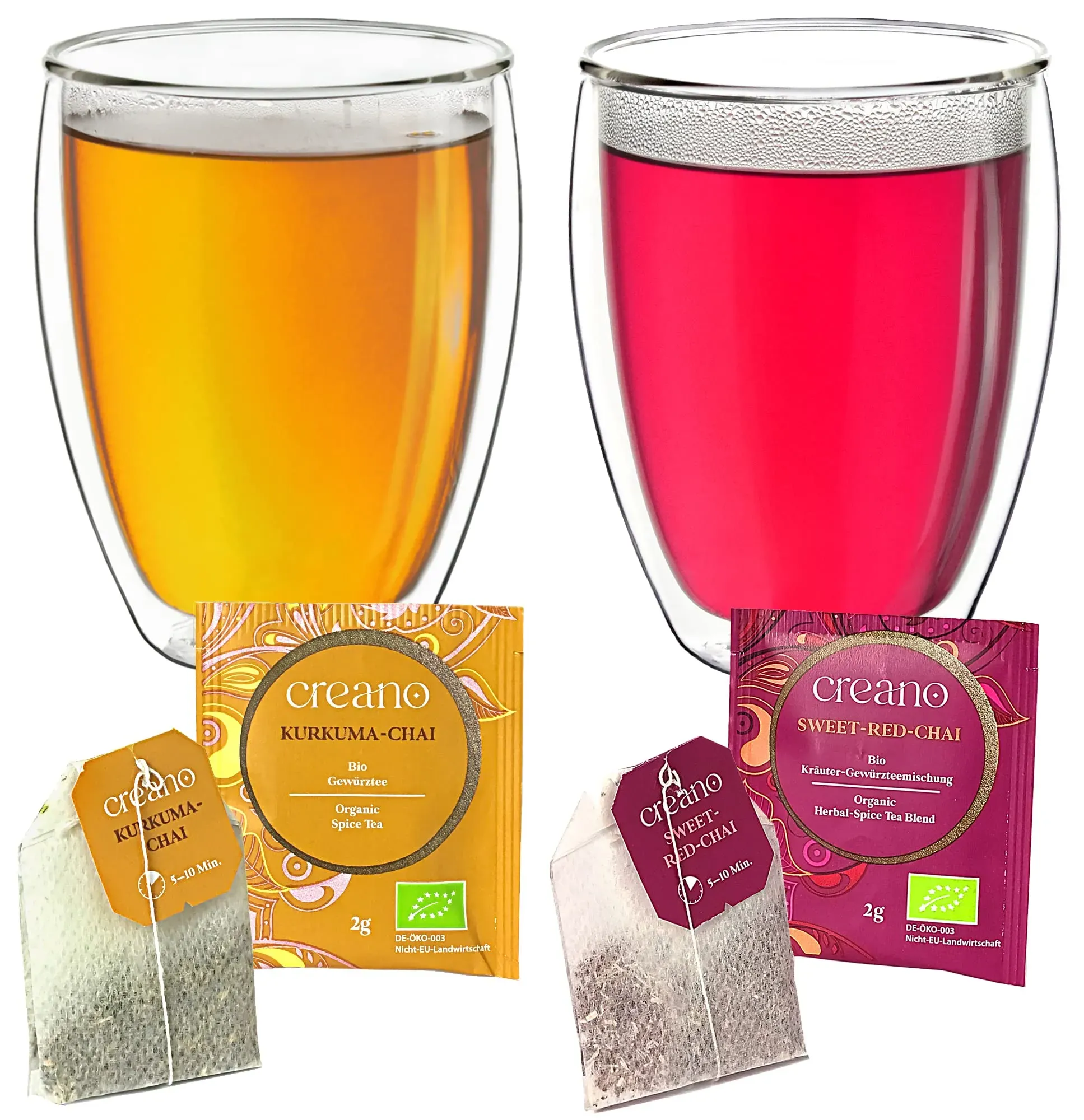 VerfĂŒgbarkeit: Auf Lager - Kategorie: GlĂ€ser - Creano - GTIN:4260123155681 - ANGEBOT: 2x 250ml doppelwandige TeeglĂ€ser bzw. KaffeeglĂ€ser mit Henkel aus hochwertigem Borosilikatglas, welches heiĂe GetrĂ€nke lĂ€nger warm und kalte GetrĂ€nke lĂ€nger kalt hĂ€lt. Zudem sorgt das Doppelwandglas fĂŒr ein stets gleichmĂ€Ăig temperiertes AuĂenglas, sodass auch ein mögliches Verbrennen der Finger der Vergangenheit angehört. BESONDERHEITEN: Durch den optischem Schwebe-Effekt, scheint das GetrĂ€nk im Glas zu schweben. AuĂerdem entsteht kein störendes Kondenswasser, somit keine lĂ€stigen RĂ€nder auf dem Tisch beim Genuss von KaltgetrĂ€nken, ideal bei der Nutzung als Cocktailglas. MERKMALE: Die MaĂe der TrinkglĂ€ser sind: ca. 10,5cm Hoch x 8cm Durchmesser, kleine Abweichungen sind Aufgrund der Handarbeit produktionsbedingt möglich. Die IsolierglĂ€ser sind zudem spĂŒlmaschinengeeignet, mikrowellengeeignet, frostsicher & besonders stoĂ- & kratzfest. QUALITĂ€TS-KONTROLLEN DURCH AKKREDITIERTE SPEZIALISTEN von V-TRUST - UnabhĂ€ngige Inspektoren testen auf Basis eines umfangreichen PrĂŒfkataloges jede Produktionscharge auf die ErfĂŒllung der hohen Creano-QualitĂ€tsstandards. SpĂŒlmaschinensicherheit, Hitze/KĂ€lte-bestĂ€ndigkeit, Bruchsicherheit und VerarbeitungsqualitĂ€t sind nur einige der Kriterien, die geprĂŒft und gewĂ€hrleistet werden. UNSERE ZUFRIEDENHEITS Zögern Sie nicht uns zu kontaktieren. Bei jeglichen Problemen steht Ihnen unser freundlicher und kompetenter ... Ein attraktives Angebot, das zwei 250ml Gläser mit einer Gratis-Teeprobe kombiniert. ![]() ![]() Creano doppelwandige GlĂ€ser 250ml ÂÂDG-HochÂÂ, 2er Set + 2x hochwertiger Creano KrĂ€utertee oder FrĂŒchtetee gratis