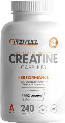 Kategorie: Sportnahrung - ProFuel - GTIN:4251131101531 - CREAPURE CREATIN: Unser CREATINE MONOHYDRATE enthält ein hochwertiges Creatin Monohydrat-Pulver von Creapure. Das Creatine-Monohydrate von Creapure wird in Deutschland hergestellt und rt eine weltweit einmalige Reinheit von über 99,9%. SO WIRKT CREATIN: Kreatin Monohydrat ist DAS Supplement für schnellere Fortschritte im Training: Kreatin erhöht die körperliche Leistung bei Schnellkrafttraining im Rahmen kurzzeitiger körperlicher Höchstbeanspruchung. Die positive Wirkung stellt sich bei einer täglichen Aufnahme von mindestens 3 g Creatin ein. OPTIMAL HOCHDOSIERT: Eine Portion CREATINE MONOHYDRATE Kreatin-Pulver enthält 3,41 Gramm Creatin-Monohydrat und liefert damit 3 g reines Creatin. MADE IN GERMANY & LABORGEPRüFT: Die Herstellung/Abfüllung unseres CREATINE MONOHYDRATE Creatine-Supplements findet in Deutschland statt und unterliegt somit den strengen deutschen Richtlininen zur Herstellung von Nahrungsergänzungsmitteln sowie regelmäßigen Kontrollen. Zusätzlich lassen wir unser Creatin-Pulver regelmäßig durch ein unabhängiges Lebensmittel-Labor untersuchen - Prüfzertifikat siehe Bildergalerie. VEGAN: Sämtliche Rohstoffe für das Creatin-Pulver sind rein pflanzlich, das CREATINE MONOHYDRATE mit Creapure Creatin ist zu 100% vegan. - 21,95 Euro bei Amazon Marketplace Health & Personal Care - gefunden von billiger.de ProFuel bietet eine hohe Anzahl an Creapure Kapseln, was eine langanhaltende Versorgung sichert. ![]() ![]() ProFuel Creatine Kapseln 100 % Creapure, 240 Kapseln