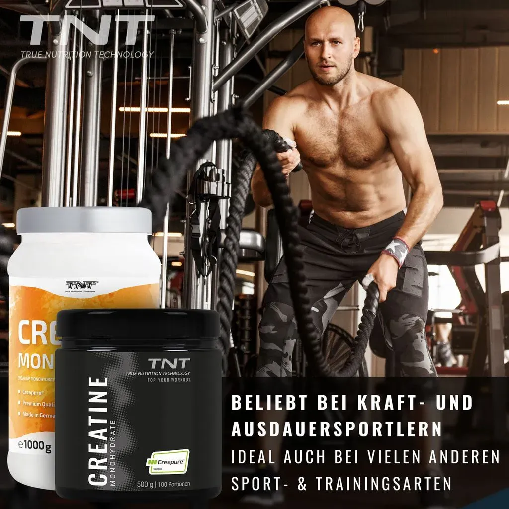 Kategorie: Sportnahrung - foodelis - GTIN:8437023234617 - Das Nr. 1 Das reinste Creatin auf dem Markt: Creapure ist die am meisten erforschte und weltweit meistverkaufte Kreatinform, die als sicher und wirksam sowohl für Männer als auch für Frauen getestet wurde. Foodelis Creapure Kreatin unterstützt die körperliche Leistung bei aufeinanderfolgenden Serien kurzer, intensiver übungen. Der tägliche Konsum von Foodelis Creapure Kreatin kann die Wirkung von Widerstandstraining auf die Muskelkraft bei Erwachsenen über 5 n positiv beeinflussen. Einfache Einnahme: Der positive Effekt wird durch eine tägliche Einnahme von 3 g (1/2 Dosierlöffel) erreicht, aufgelöst in 200-250 ml Wasser, Saft oder einem Proteinshake, in Kombination mit Widerstandstraining. Nur Kreatin in Pulverform, nur das, was du brauchst: Erreiche deine Ziele und forme den Körper, den du dir wünschst, mit 100% Creapure Kreatin-Monohydrat von Foodelis. Ultramikronisiert, von höchster Reinheit und ohne fragwürdige Zusatzstoffe. Erreiche deine Ziele jetzt: Sportnahrung mit leichter Aufnahme und hoher Löslichkeit. Vegan und Non-GMO. Ohne Kalorien, ohne Geruch und ohne Geschmack. Geeignet für Wettkampf-, Kraft-, Ausdauer- und Fitnesssportler. Foodelis-Vertrauen: Unser Ziel ist es, zu deiner Gesundheit und deinem Wohlbefinden beizutragen. Deshalb bieten wir dir ein hochwertiges Nahrungsergänzungsmittel, das auf deine Bedürfnisse abgestimmt ist. Unsere Premium-Komponenten werden in unseren Labors getestet, und alle ... TNT Creatine Monohydrate Creapure ist ein bewährtes Produkt zu einem fairen Preis von 23,79 Euro. ![]() ![]() TNT Creatine Monohydrate Creapure 500g