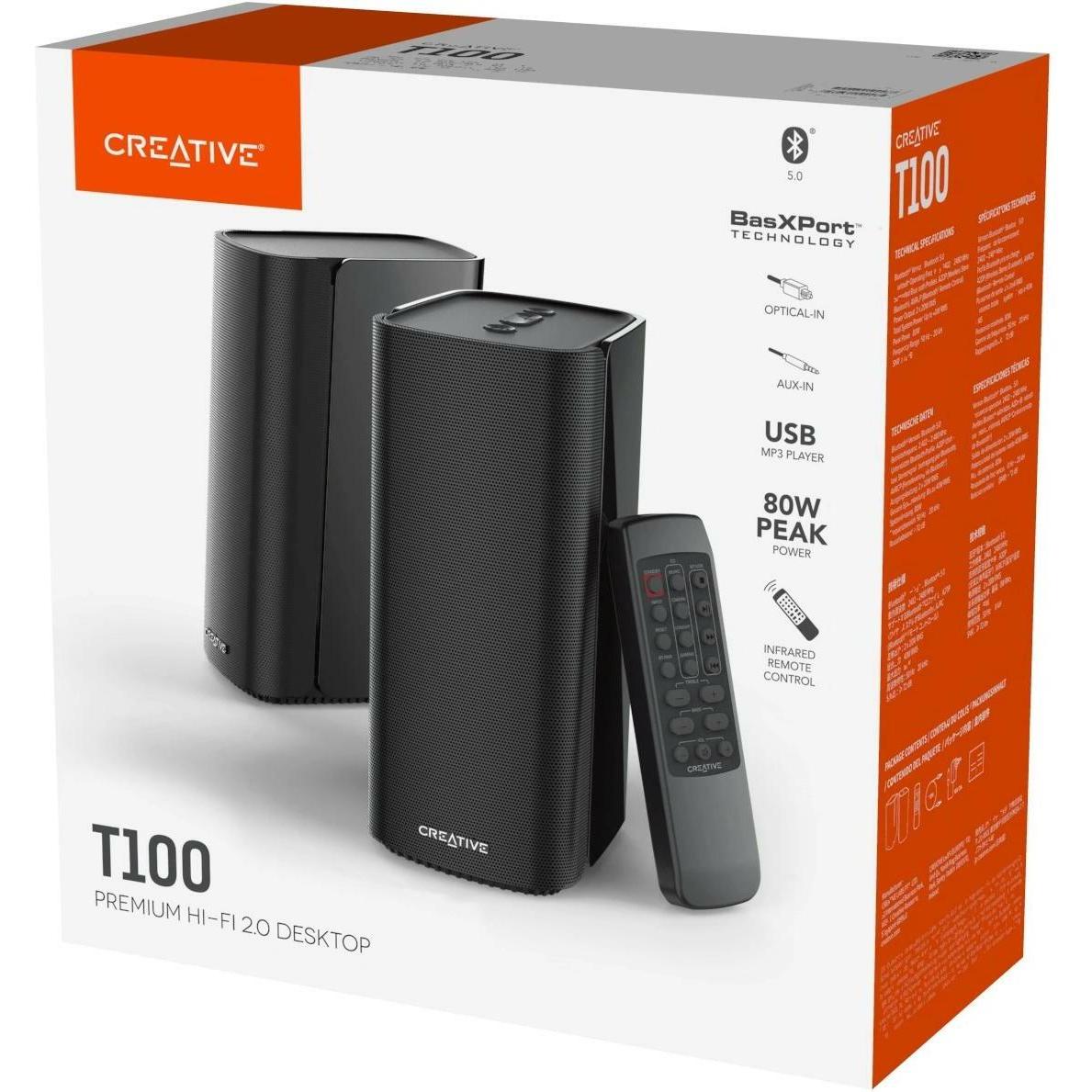 Auf Lager Versand durch AmazonCreative T100 Kompakte 2.0-Hi-Fi-Desktop-Lautsprecher, bis zu 80W Spitzenleistung mit Bluetooth 5.0, optischer Eingang, für Computer und Laptops