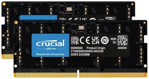 Auf LagerCrucial DDR5 RAM 32GB Kit (2x16GB) 4800MHz SODIMM, Arbeitsspeicher für Laptop/Notebook, Mini PC, CL40 - CT2K16G48C40S5