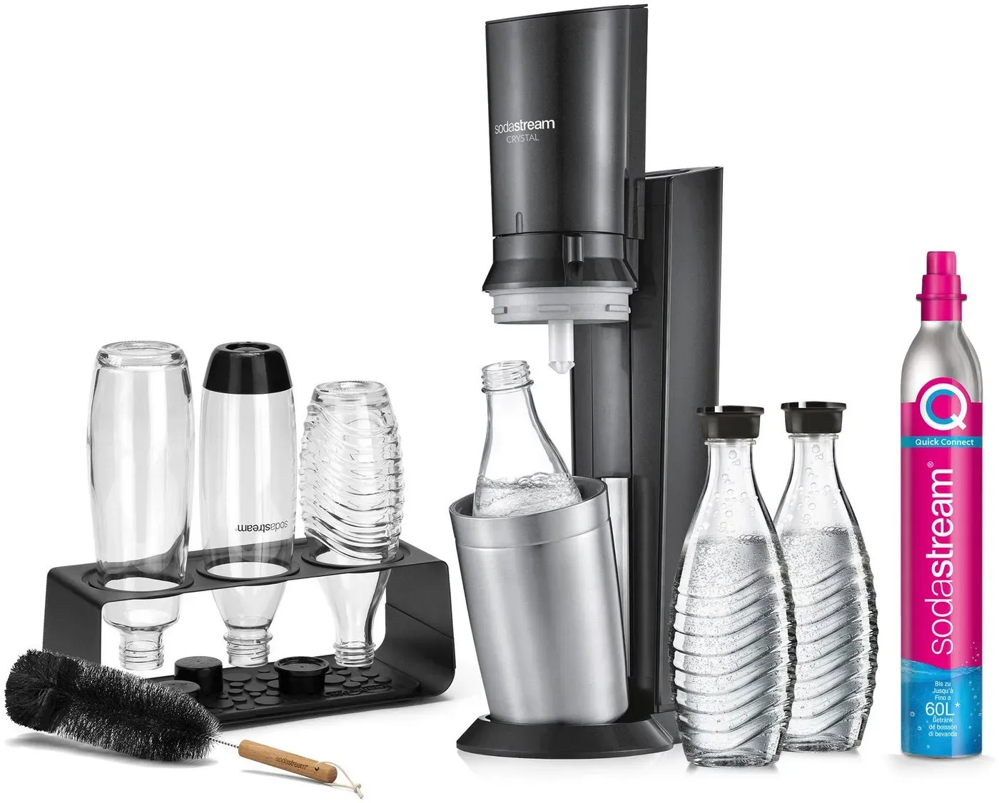 Kategorie: Wassersprudler - Sodastream - GTIN:7290116742380 - Sodastream Crystal 3.0 Wassersprudler Titan Kabellos, funktioniert ohne Strom Spülmaschinenfeste Glaskaraffe für optimale Hygiene und einfache Reinigung Quick- Connect System für ein einfaches und intuitives Einsetzen des Zylinders Moderner Edelstahlbehälter mit automatischer öffnung - 99,90 Euro bei Media Markt Online Shop - gefunden von billiger.de Dieses Titan-Modell bietet eine hochwertige Optik und ist ein solides Angebot für alle, die Wert auf Design legen. ![]() ![]() Sodastream Crystal 3.0 titan Vorteilspack Trinkwassersprudler - Schwarz