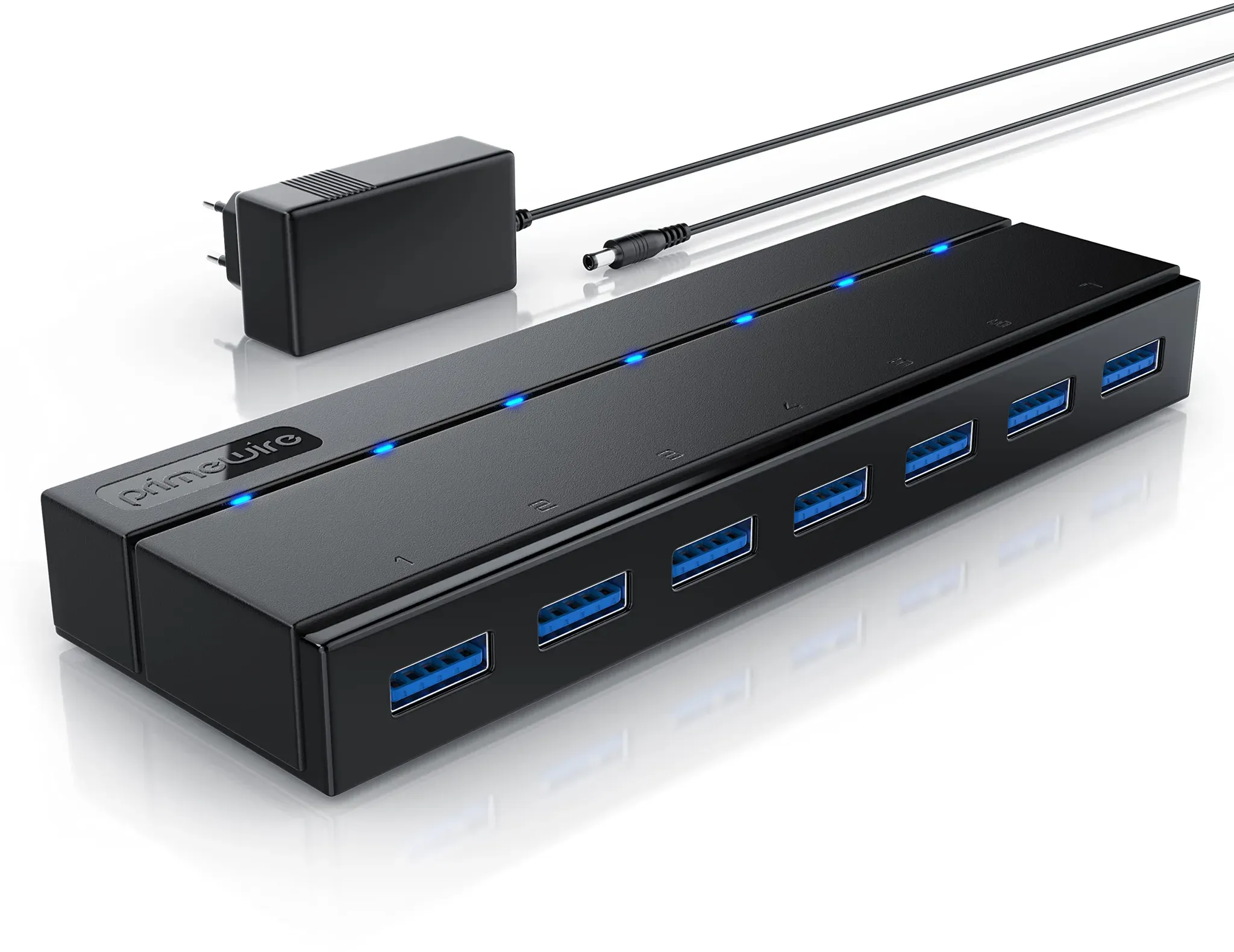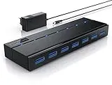Auf Lager Versand durch AmazonCSL - USB Hub 3.2 Gen1 mit Netzteil aktiv - aktiver 7 Port Verteiler - inkl. 1x 12V 3A DC-Hohlsteckernetzteil - für PC Notebook Laptop PS4 Tablet MacBook - Super Speed bis zu 5 Gbit s