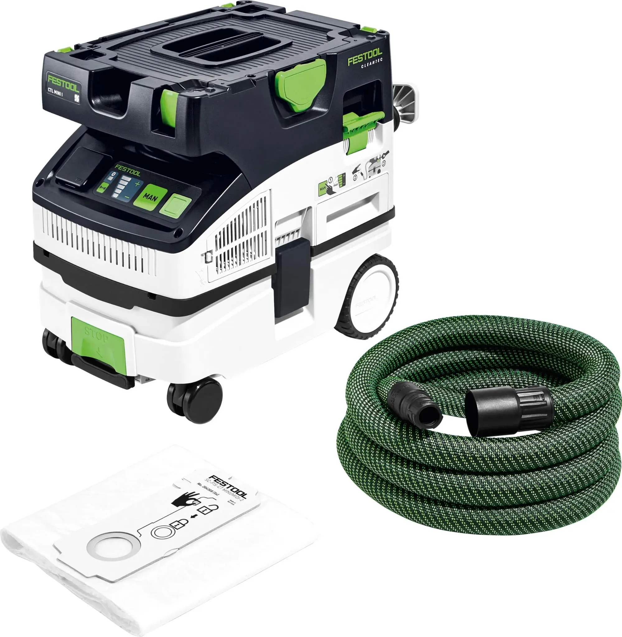Werkzeug Werkstatteinrichtung & Werkstattzubehör Industriestaubsauger & Staubsaugerbeutel Industriesauger Staubsaugerzubehör - EAN:4064677159467 - Lieferumfang: - 1x Festool CTL MINI I CLEANTEC Absaugmobil - 1x Hauptfilter HF-CT COMP ( 204200 ) - 1x SELFCLEAN Filtersack SC-FIS-CT - 1x Saugschlauch D 27/32x3,5m-AS/CTR ( 577158 ) - 1x Handrohr gebogen D 36 HR-K AS - 1x Bodendüse D 36 BD 300 - 3x Verlängerungsrohre D 36 VR-K AS - 1x Fugendüse D 36 FD-300 - 1x Saugpinsel D 36 SP - 1x Systainer SYS3 M 137 Produktbeschreibung: Der Festool CTL MINI I ist ein leistungsstarkes, kompaktes Absaugmobil, das mit durchdachter Technik, hoher Funktionalität und maximaler Mobilität überzeugt - perfekt für Service- und Montageeinsätze, die Endreinigung oder die Absaugung bei kleineren Schleif-, Fräs-, Säge- oder Bohrarbeiten. Mit seinem geringen Gewicht, kompakten Maßen und einem robusten Fahrwerk ist der Sauger ideal für den flexiblen Einsatz unterwegs. Die intuitive Touch-Bedienung, die Automatik-Steckdose für kabelgebundene Werkzeuge und die integrierte Bluetooth R -Technologie für automatisches Starten über Akkupack oder Fernbedienung sorgen - gefunden von Kelkoo Ein Premium-Paket mit dem Absaugmobil und einem 8-teiligen Handwerker-Reinigungsset für vielseitige Anwendungen. Manomano.d e