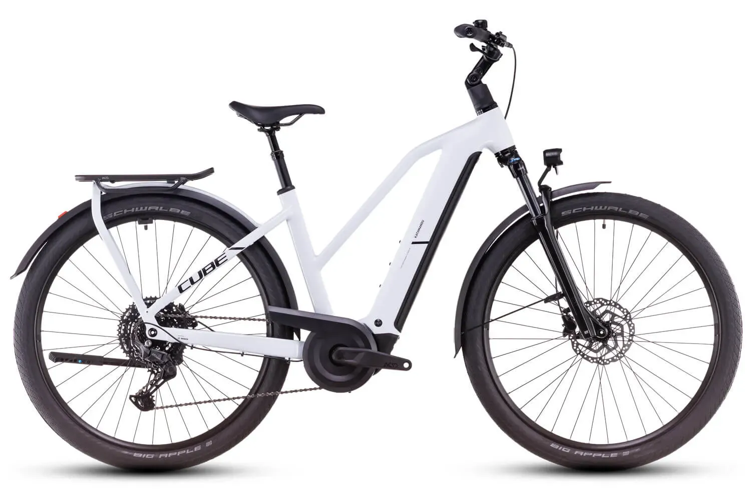 7 Werktage in_stock - Master ebike outlet E-Bikes E-Special XXL E-Bikes Fahrräder - EAN:4054571462268 - Wer mit dem Kathmandu Hybrid ONE von CUBE unterwegs ist, kann seiner Abenteuerlust freien Lauf lassen, denn das Bike ist mit einem PowerTube Akku ausgerüstet, der den leistungsstarken Bosch CX Antrieb mit bis zu 85 Nm Drehmoment zuverlässig vorwärtstreibt. Dabei bringt die einfach zu bedienende, breit gefächerte Cues 10-fach Schaltung von Shimano die Power wohldosiert auf die Straße und macht so jede Route zum Spaziergang. In Sachen Komfort leisten die Suntour Luftfedergabel, eine gefederte Sattelstütze und der verstellbare Vorbau besonders an langen Tagen im Sattel wertvolle Dienste. Sichere, zuverlässige Bremskraft bei jedem Wetter ist das Spezialgebiet der leistungsstarken hydraulischen Shimano Scheibenbremsen. On top kommt ein Zubehör-Komplettset, bestehend aus einer Lichtanlage, Schutzblechen und natürlich unserem integrierten Gepäckträger IC 3.0. Keine Frage, dieses E-Bike steht jederzeit für alle Entdeckertouren bereit. Video: BIKES 2025 - gefunden von Kelkoo Ebike- 24.com Cube Kathmandu Hybrid ONE - 28 Zoll 800Wh 10K Diamant - polarwhite´n´black 62 cm