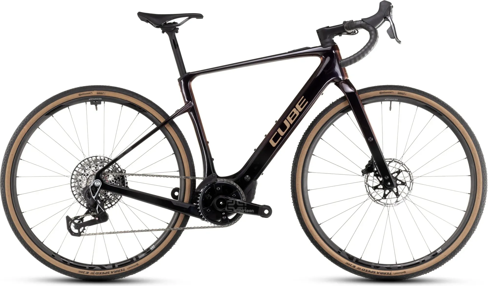 Kategorie: E-Bikes - Cube - GTIN:4054571465191 - Cube Nuroad Hybrid C:62 SLT 400X 2025 | solareclipse n bronze | M | E-Rennräder: Er verfügt über diverse Befestigungspunkte um Seitenständer, Schutzbleche und Gepäckträger nachzurüsten., Dazu beherbergt der elegante Rahmen den kompakten und leichten Bosch SX Motor und einen fest integrierten 400 Wh Akku (optional mit Range-Extender um 250 Wh erweiterbar)., Feld, Wiese, Schotterpiste: Mit dem Cube Nuroad Hybrid C:62 SLT 400X kommst du überall durch., Perfekt für light-E-MTB oder E-Gravelbikes wie hier beim Nuroad Hybrid C:62 SLT 400X., Der Bosch System Controller sitzt unscheinbar auf dem Oberrohr und die Steuerung des Bosch Motorsystems erfolgt über eine kleine Fernbedienung am Griff., Das Topmodell der schnellen Cube E-Gravelbikes: Cube Nuroad Hybrid C:62 SLT 400X., Platz für 50 mm breite Reifen (45er Continental Terra Speed ab Werk), sowie Force eTap AXS Bremsen und eine Funk-XX SL Eagle AXS 12-fach Schaltung von SRAM präsentieren - 6299,99 Euro bei Lucky Bike - gefunden von billiger.de Dieses E-Rennrad in Größe S ist eine gute Wahl für sportliche Fahrer, die elektrische Unterstützung wünschen. ![]() ![]() Cube Nuroad Hybrid C:62 SLT 400X 2025 | solareclipse n bronze | S | E-Rennräder - rot/orange