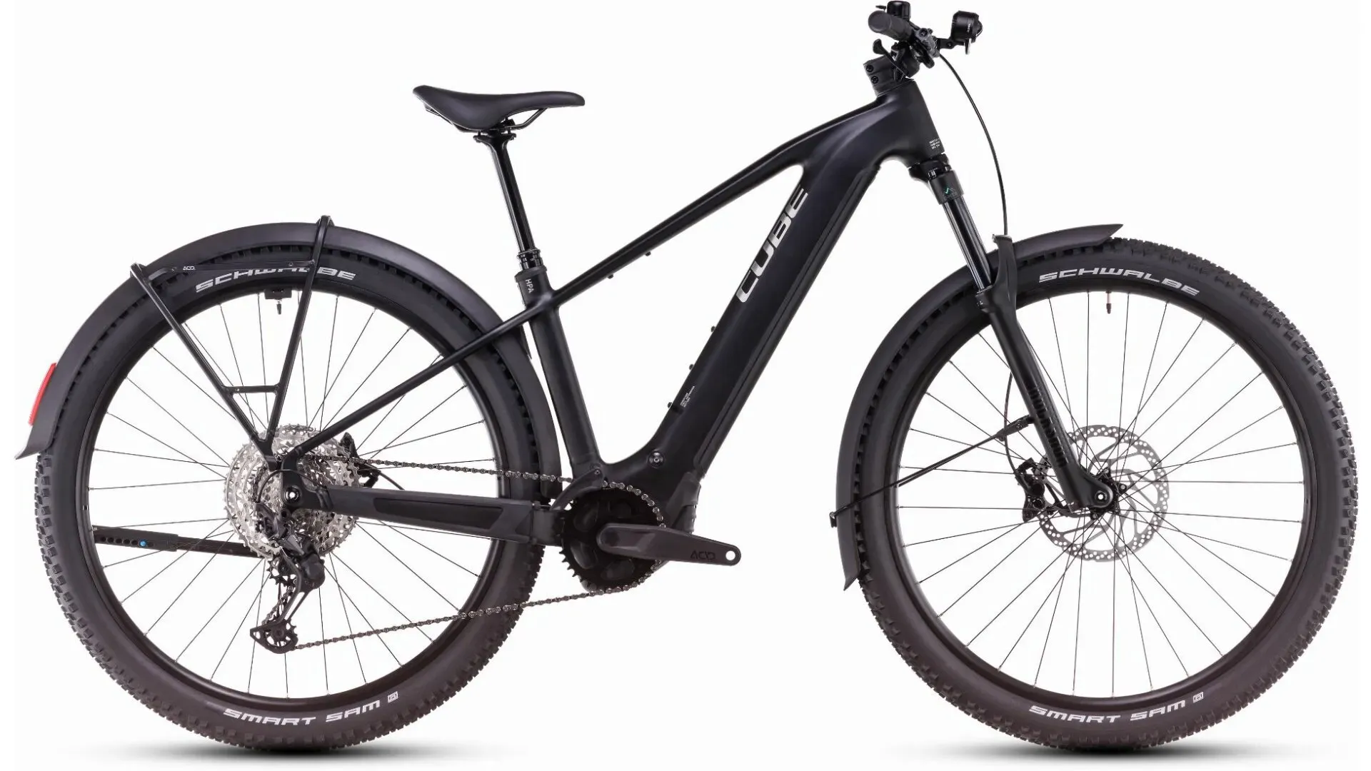 Verfügbarkeit: 6-8 Werktage - Kategorie: E-Bikes - Cube - GTIN:4054571484321 - Ein Blick auf das Reaction Hybrid Race Allroad genügt und schon ist klar: Hier haben wir uns mal wieder extra viel Mühe gegeben. Zum einen ist dieses E-Hardtail standardmäßig mit Schutzblechen, einem robusten Gepäckträger, einem sauber ins Design integrierten Beleuchtungssystem und einem stabilen Seitenständer versehen. Zum anderen mit einer versenkbaren Sattelstütze für noch besseres Handling auf anspruchsvollen Trails. Für höchsten Fahrkomfort und erstklassige Kontrolle bei jedem Wetter gibt's on top 2.6 Zoll breite, griffige Schwalbe Pneus und eine einfach einstellbare RockShox Recon Silver Luftfedergabel mit 120 mm Federweg (100 mm bei den kleinsten Rahmengrößen und den Tiefeinsteiger-Modellen). Dazu bringt die superzuverlässige Shimano XT 12-fach Schaltung den Vortrieb mit ihrer hohen übersetzungsbandbreite wohldosiert auf den Untergrund. Wir haben uns also um die Details gekümmert, jetzt kümmere du dich um deinen Fahrspaß! Der Rahmen des Reaction Hybrid Allroad steckt voller cleverer Features €“ und damit meinen wir nicht nur die integrierten Schutzbleche, den Gepäckträger, die Beleuchtung und den Seitenständer. Sein starker PowerTube Akku und der Bosch CX Motor sind so formschön, sauber und sicher ins schlanke, elegante Design integriert, dass sie kaum auffallen. Außerdem ist das Chassis PowerMore-ready, das heißt, es können bei Bedarf weitere 250 Wh mitfahren. ... Ein Pro-Modell mit 800 Wh Akku zu einem sehr wettbewerbsfähigen Preis. Bike- angebot.de Cube Reaction Hybrid Pro 800 Allroad metallicgrey´n´black 29' 800 Wh Trapez