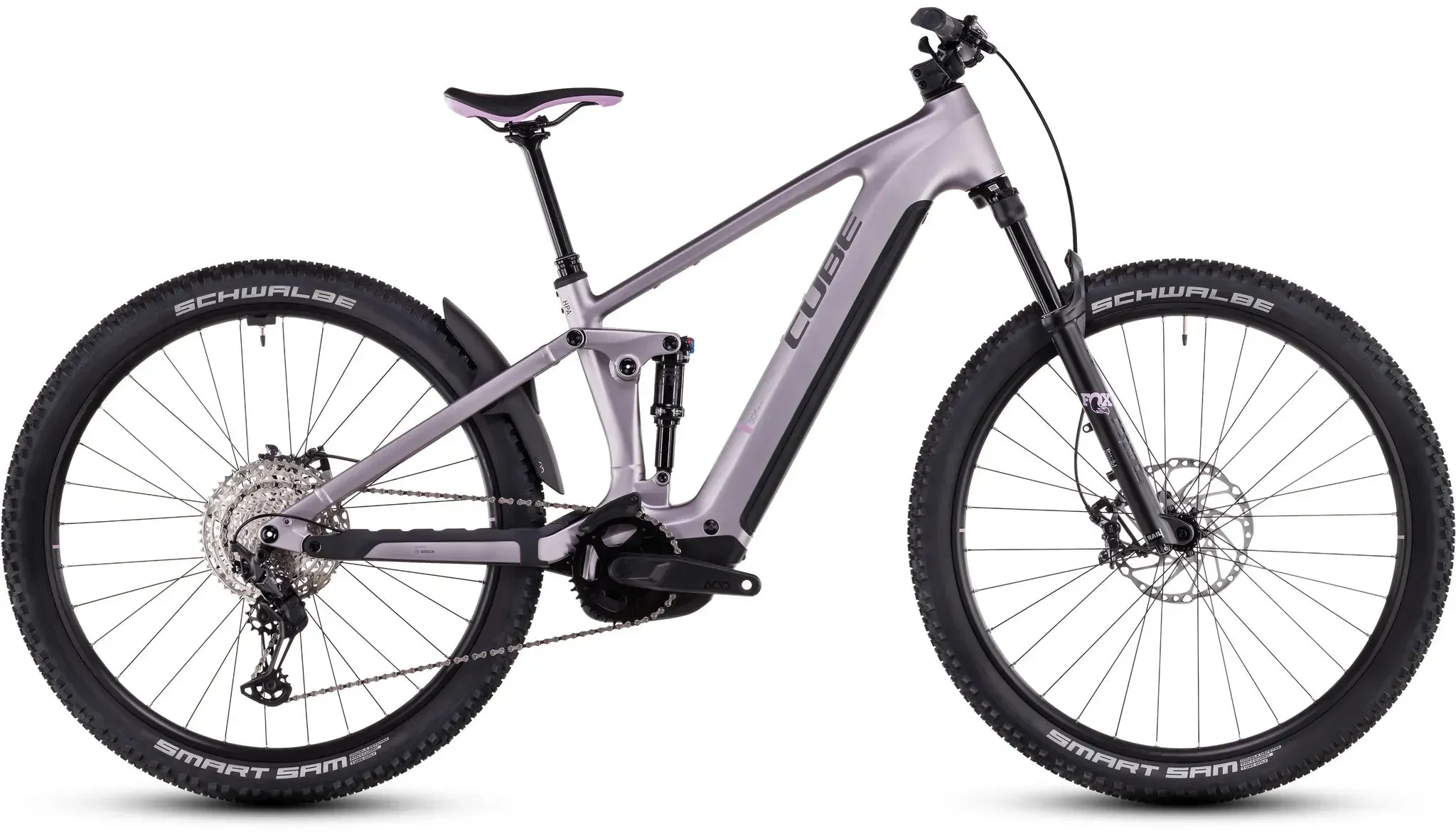 Kategorie: E-Bikes - Cube - GTIN:4054571453365 - Ab aufs Bike und rein ins Wochenende so lautet die Devise des Stereo Hybrid ONE22 SLX. Kein Wunder, denn hier kommen zahlreiche geniale Details zum Einsatz, zum Beispiel ein Bosch CX Antrieb mit Purion 200 Display, hydraulische Shimano XT 4-Kolben Scheibenbremsen mit großen Rotoren und eine versenkbare Sattelstütze. Seine unglaubliche Reichweite verdankt dieses E-Fully dem starken PowerTube Akku und dank der leichtgängigen Shimano XT 12-fach Schaltung werden jede Route und jeder Anstieg zum Spaziergang. Auf anspruchsvollen, holprigen Trails spielen die Fox 34 AWL Float Federgabel, der Fox Float Rhythm RC Dämpfer und die griffigen, komfortablen 2.6 Zoll Pneus von Schwalbe ihre Qualitäten aus. Und, steht das Ziel fürs nächste Abenteuer schon fest? Bei diesem Chassis trifft ein kraftvoller Bosch Motor auf die bewährte Kinematik von CUBE. Das Ergebnis ist der ultimative Geländeprofi, bei dem das Fahrwerk höchst effizient mit der 120 mm Federgabel (mit Schutzblech-Aufnahmepunkten) zusammenarbeitet. Dadurch ist nicht nur optimaler Komfort, sondern auch top Kontrolle rt. Der leistungsstarke Bosch CX Antrieb wird von einem starken PowerTube Akku gespeist, was sich vor allem auf langen Trails bezahlt macht. Dazu haben wir unserer Detailverliebtheit beim Rahmenbau geschuldet die Sattelklemme überarbeitet, ein UDH Schaltauge sowie eine Kettenführung verbaut und die Züge ins Rahmeninnere verlegt. Clever: Dank unserem Size Split System ... Dieses 29-Zoll-Modell in lilacbreeze n reflect und GröÃ?e M ist eine attraktive Option für gröÃ?ere Laufräder. ![]() ![]() Cube Stereo Hybrid ONE22 SLX 800 29 Zoll lilacbreeze n reflect M