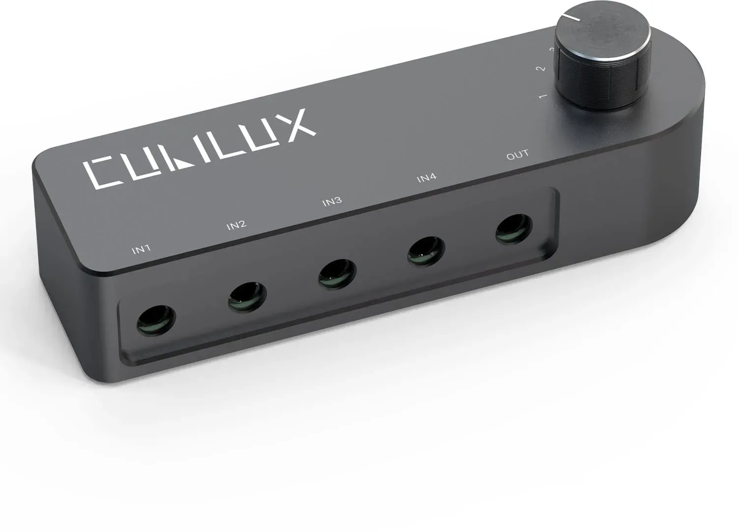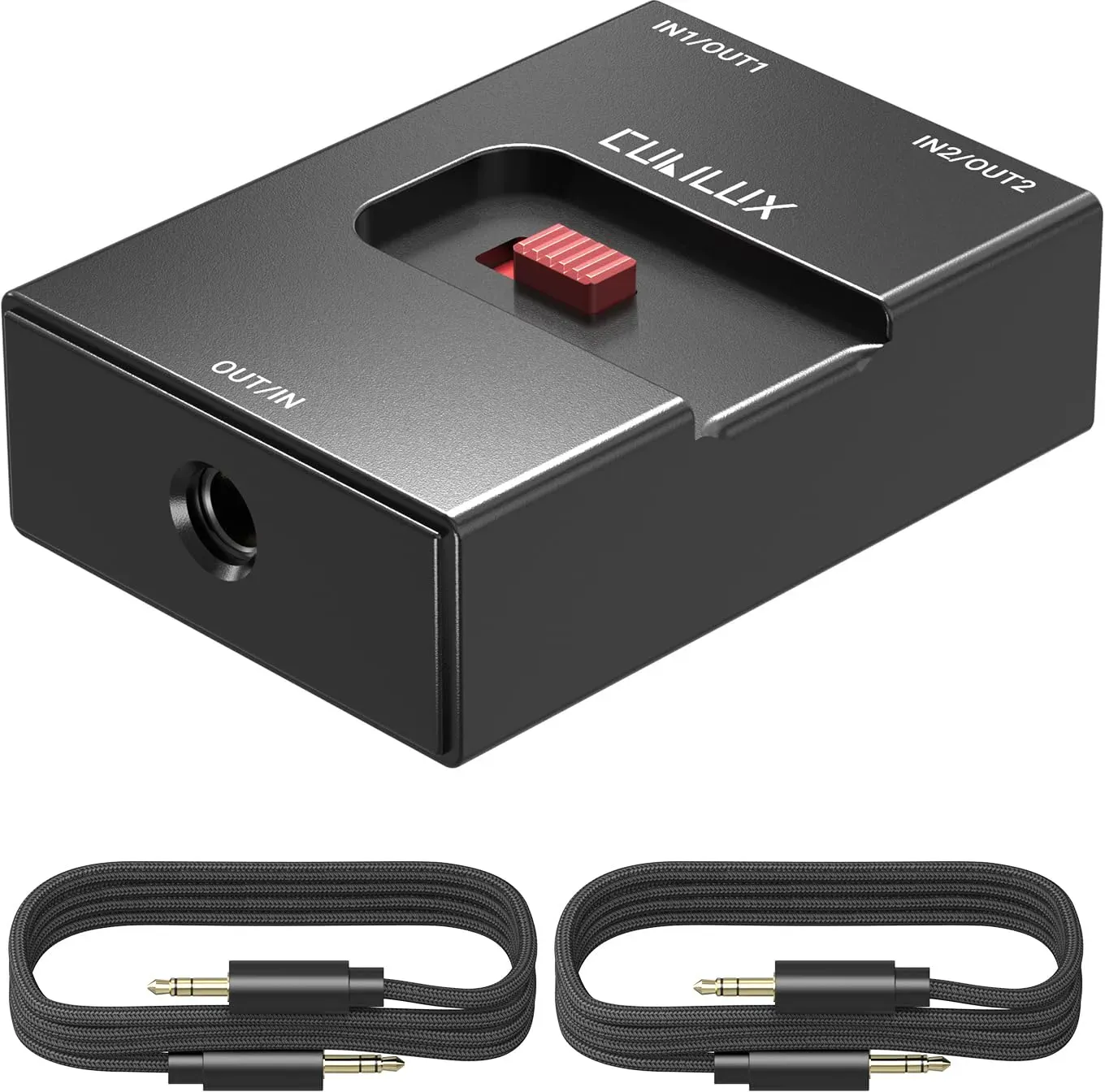 Auf Lager Versand durch AmazonCubilux 3,5 mm Audio-Auswahlschalter, bidirektionaler 2-in-1-Ausgang oder 1-in-2-Out, 1/8-Zoll-TRS-Kopfhörer-Schalter, ultrakompaktes Aluminiumgehäuse, passiver Kippschalter A/B AUX-Schalterbox für PC