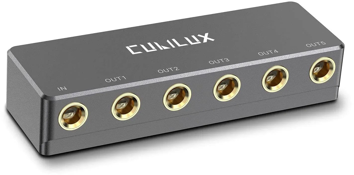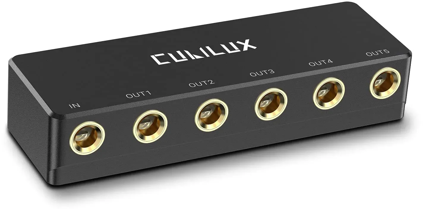 Auf Lager Versand durch AmazonCubilux 1 in 5 Out Klinke Splitter Box, Passiv 6.35mm 5-Wege Audio-Splitter Aux klinken für Gitarre, Klaviatur, Studio Monitor, 1/4? Mono/Stereo 5 Häfen Viertel Zoll Klinkenverteiler