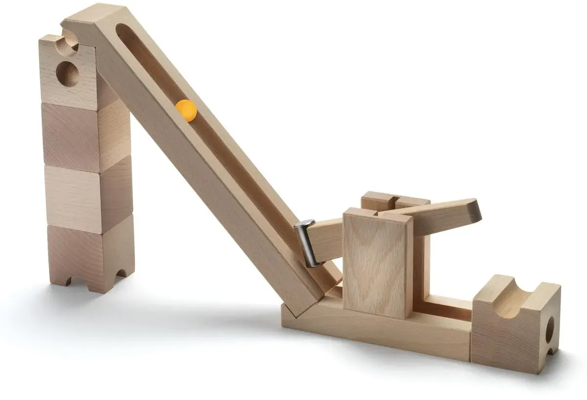 Kategorie: Holzspielzeug - cuboro - GTIN:7640111742166 - Art.-Nr.: 216 Inhalt: 16 Elemente; 5 Glaskugeln Altersempfehlung des Herstellers: ab 1 n Kompatibilität: Alle Sets von CUBORO sind miteinander kombinierbar und ergänzen sich. Material: Die CUBORO Elemente werden aus naturbelassenem Schweizer Buchenholz hergestellt. Das Holz stammt aus nachhaltiger Waldwirtschaft aus regionalen Wäldern, Hersteller: cuboro - 159,00 Euro bei Amazon Marketplace Toys - gefunden von billiger.de Das Cuboro Trick Extra Set ist ideal für trickreiche Bahnen und fördert kreatives Denken. ![]() ![]() Cuboro Trick - Kugelbahn - das Extra Set für trickreiche Bahnen