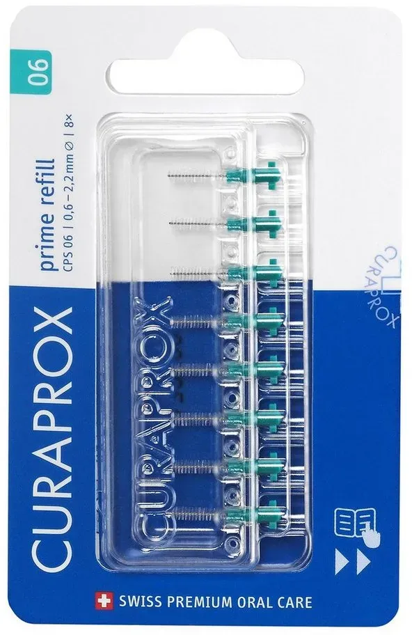 1,03 /St - Kategorie: Zahnpflegeartikel - Curaprox - GTIN:7612412427325 - PZN:16166406 - Curaprox CPS 06 prime Interdentalbürsten 8 St - rezeptfrei - von Curaden Germany GmbH - Zahnbürste - 8 St - 8,26 Euro bei DocMorris Apotheke - gefunden von billiger.de Dieses Nachfüllpack ist bei Amazon erhältlich und bietet eine gute Option für den regelmäßigen Gebrauch. ![]() ![]() Curaprox Interdentalbürsten-nachfüllpackungen CPS 06 Prime ? ISO Grösse 0, Türkis | Ultrafeine Filamente Für Die Sanfte Reinigung Kleiner Zwischenräume | 8 Stück | Hergestellt in Der Schweiz