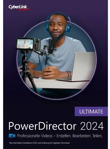 Auf Lager Versand durch AmazonCyberLink PowerDirector 2024 Ultimate | Professionelles Videobearbeitungsprogramm für PC mit Greenscreen und tausenden Effekten | Fotoshow | Für jede Filmproduktion | Screen Recorder | Windows [Box]