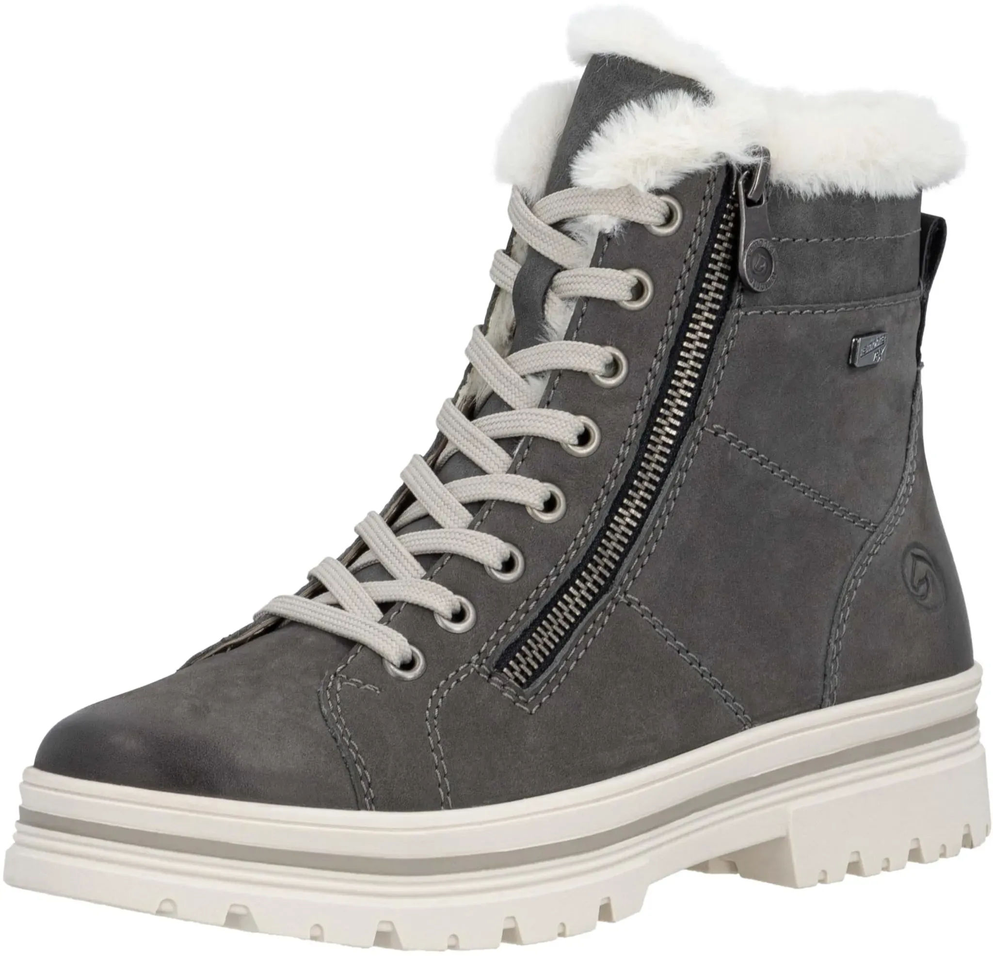 5 Händlerangebote bei billiger.de - Kategorie: Stiefeletten - REMONTE - Comfy Queen: Diese super bequemen remonte Schnürstiefel für Damen aus Rauleder in Grauweiß sind ein absolutes Highlight dieses Winters. Trotz Schnürung kann der Schuh ganz einfach mit einem Reißverschluss geschlossen werden. Der flauschige Schaftrand sorgt für das gewisse Etwas. Die leichte und griffige Sohle überzeugt auf ganzer Linie. Ein Wohlfühlfaktor on top ist die Komfortweite, die mehr Freiraum im Schuh bietet. Dank der remonte Features ist der Schuh optimal für das Winterwetter ausgestattet. Mehr Style geht nicht! - GTIN:4061811464173 ![]() ![]() REMONTE Damen D2U73 Schnürstiefel, Grau, 39 EU