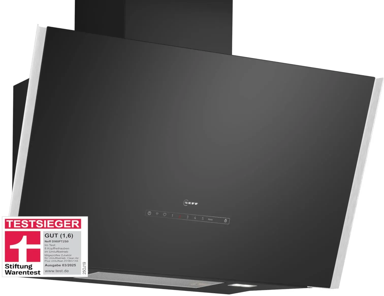 D98ipt2s0 META PreisvergleichMit dem Meta-Preisvergleich suchen Sie gleichzeitig bei den großen Preisvergleich Portalen!Jetzt live Suche nach d98ipt2s0 starten! D98ipt2s0 KaufberatungNeff D98IPT2S0 - Kaufberatung und ProduktübersichtDie Neff D98IPT2S0 ist eine hochwertige Wandesse mit modernem Schrägdesign, die sich besonders für anspruchsvolle Küchen eignet. Wichtige ProduktmerkmaleDesign und Montage Die Haube besticht durch ihr elegantes Schrägessen-Design in Schwarz mit metallischen silbernen Lisenen[2]. Mit einer Breite von 90 cm und einer Tiefe von 44,70 cm passt sie perfekt über Standard-Kochfelder[1]. Die Wandmontage ist unkompliziert und die Haube lässt sich wahlweise im Abluft- oder Umluftbetrieb betreiben[2]. Leistung und Effizienz Die Haube verfügt über 3 Leistungsstufen plus 2 Intensivstufen[4]. Im Abluftbetrieb erreicht sie eine maximale Gebläseleistung von 441 m³/h, während die Intensivstufe 2 im Umluftbetrieb 944 m³/h leistet[4]. Mit einer Energieeffizienzklasse von A+ und einem durchschnittlichen Energieverbrauch von nur 39,1 kWh pro Jahr ist sie sehr sparsam[1][2]. Intelligente Funktionen Ein besonderes Highlight ist der Automatic Air Luftgütesensor, der die Abzugsstärke automatisch an die Küchenbedingungen anpasst[3]. Die elektronische Touch-Control-Steuerung ermöglicht die Bedienung direkt am Kochfeld[4]. Über das Home Connect Smart-Home-System lassen sich Abzugsstärke und Beleuchtung auch per App regeln[3]. Geräuschpegel Bei normaler Leistungsstufe 3 arbeitet die Haube mit 51 dB(A), was sehr leise ist[2]. Auch die Intensivstufen bleiben mit maximal 80 dB(A) im Umluftbetrieb im akzeptablen Bereich[2]. Worauf Sie achten sollten