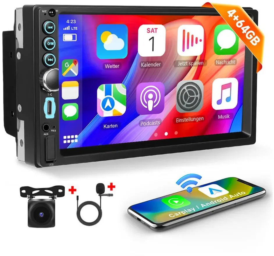 Kategorie: Car-Multimedia-Systeme - Essgoo - GTIN:0750864646769 - Audio- und Videowiedergabe Wiedergabeformate , MP3 MP4 MP5 FLAC WMA WAV JPEG, Radiofunktionen , Digitalradio (DAB+) RDS FM AM, Netzwerk- und Verbindungsarten Bluetooth-Version , 5,0, Allgemein Typ Display , Farb-Display, Funktionen , 6GB+128GB+KAM, Lieferumfang , 1 X Android Autoradio 1 X Halterung 1 X GPS-Antenne 1 X 4G Antenne 2 X ISO-Anschlusskabel 1 X Cinch-Kabel(mit 4G-Kartenleser) 1 X Backup-Kamera-Eingangskabel 2 X USB-Verlängerungskabel 1 X Montageanleitung 3,5 mm Mikrofon, Ausstattung , Tastenbeleuchtung, Größe Schacht , DIN 2, Stromversorgung Betriebsspannung , 12V V, Produktdetails Eigenschaften , AM/FM Radio Android Android Auto Animiertes Display Apple Carplay ASP Bluetooth Eingebaute GPS Antenne Eingebauter Equalizer Freisprecheinrichtung GPS GPS-Antenne intern HD Radio Ready ID3tag Lenkradsteuerung Mirror Link Radio integriert RDS Sat Nav Kompatibel Touchscreen USB WIFI WMA 4G LTE, Technische Daten WEEE-Reg.-Nr. DE , 89406397, - 189,99 Euro bei OTTO - gefunden von billiger.de Ein Hikity Autoradio mit 4GB RAM und 64GB Speicher, das drahtloses Carplay und GPS bietet. ![]() ![]()