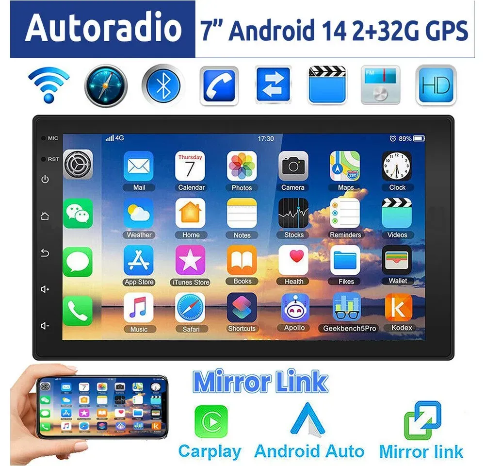 Kategorie: Car-Multimedia-Systeme - Hodozzy - Hardware und Android-Autoradiosystem Die Funktion von Android doppel-din Autoradio: Quad Core+Android 13+(1G+32G)+1080P kapazitiver Touchscreen(1024*600p)+ mit Carplay +Android Auto+DAB+FM/ RDS + WiFi + BT + Auto-GPS-Navigation + 2-Din-Autoradio mit Rückfahrkamera + Mikrofon. Mit dem Multimedia-Player des Autoradio-Touchscreen-Radios können Sie jede Anwendung wie YouTube, Spotify usw. verwenden. Installationsgröße: 178 * 100 mm CarPlay, Android Auto und MirrorLink Autoradio mit Wireless Carplay, Wired CarPlay und Android Auto. Machen Sie Anrufe, senden/empfangen Sie Nachrichten, hören Sie Musik usw., während Sie sich auf das Fahren konzentrieren. Apps, die nicht von CarPlay oder Android Auto unterstützt werden, können mit MirrorLink auf dem Radiobildschirm angezeigt werden GPS-Navigation & WIFI-Empfänger Dieses Android-autoradio unterstützt das Herunterladen, Installieren und Löschen von über Tausenden von Android-Apps. Wenn WLAN/Hotspot (nicht für Samsung 5G) verbunden ist, können Sie Apps wie YouTube oder Instagram herunterladen und Online-Karten verwenden. Sie können eine Offline-Karte wie Here wego aus dem Play Store herunterladen Bluetooth und DAB+-Empfänger/FM/RDS-Radio Autoradio mit integriertem Bluetooth und Mikrofon für Freisprechanrufe, Unterstützung für das automatische Laden von Telefonbüchern, Anzeigen von Anrufprotokollen und BT-Musikwiedergabe. Integrierter DAB+ Empfänger und Hochleistungstuner für UKW; ... Dieses ESSGOO Modell ist eine preiswerte Wahl mit Android 14 und Apple CarPlay/Android Auto, passend für verschiedene VW-Modelle. ![]() ![]()